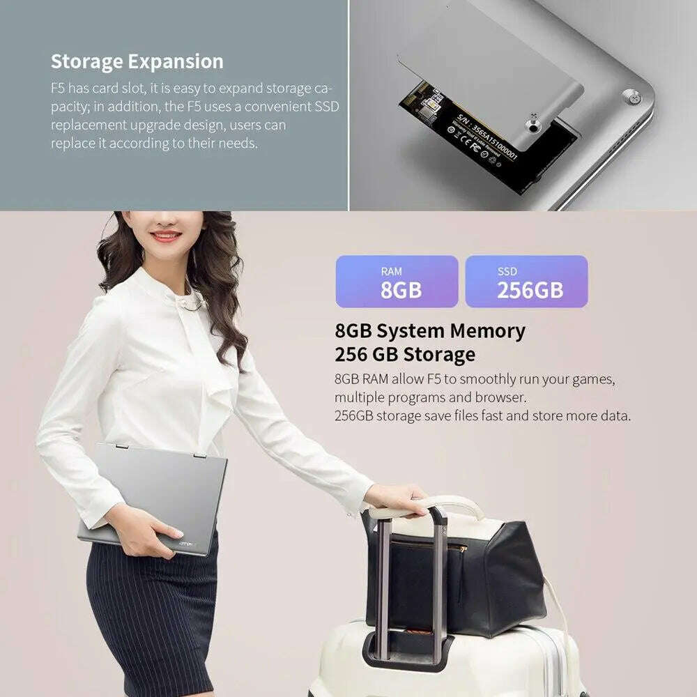 Teclast F5 Laptop - 360° Touchscreen, 8GB RAM, 256GB SSD 跳到内容