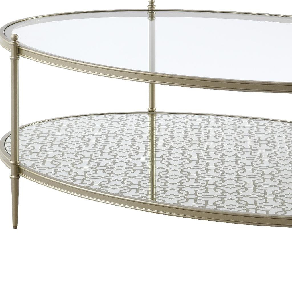 50" Clear and Champagne Glass and Steel Oval Coffee Table