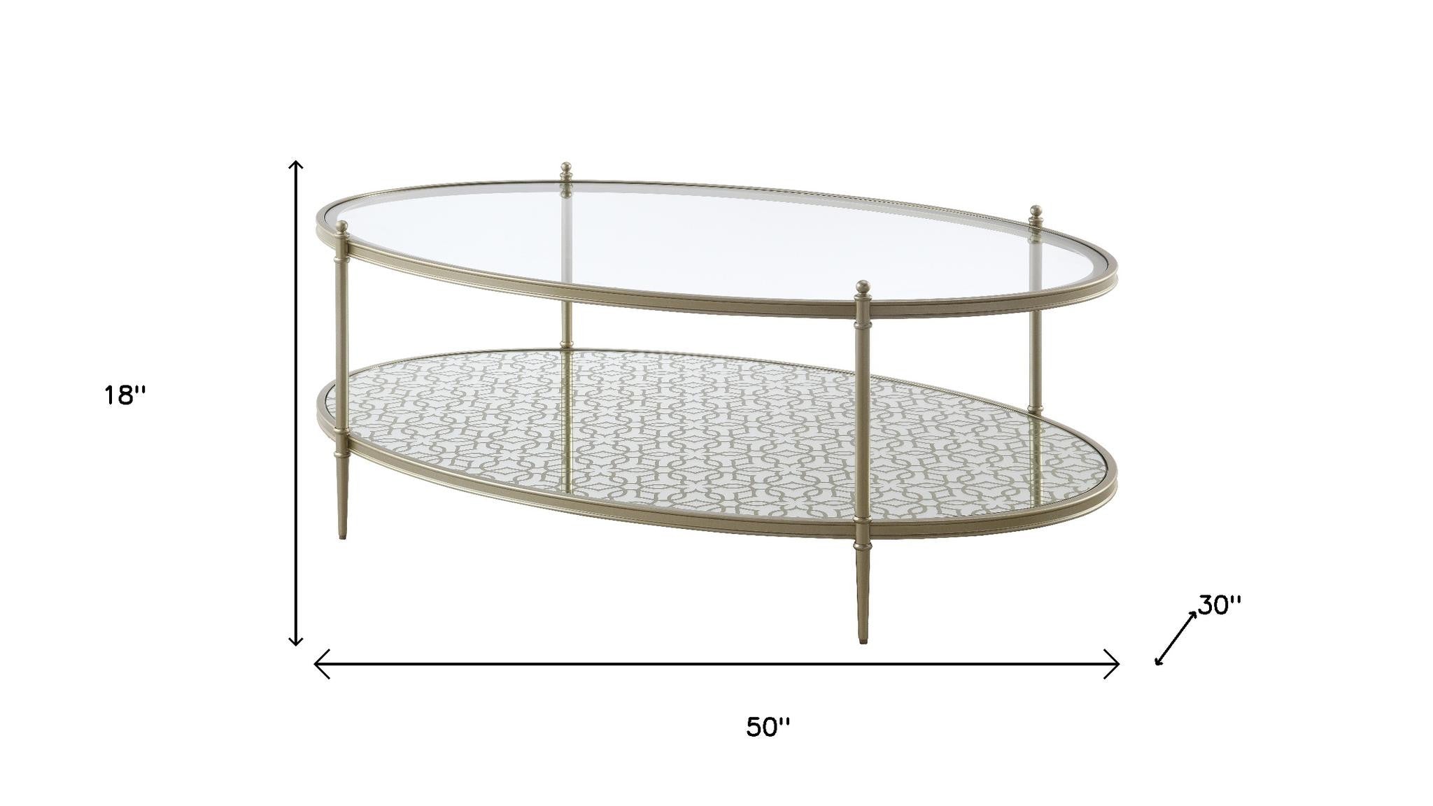 50" Clear and Champagne Glass and Steel Oval Coffee Table - 跳到内容