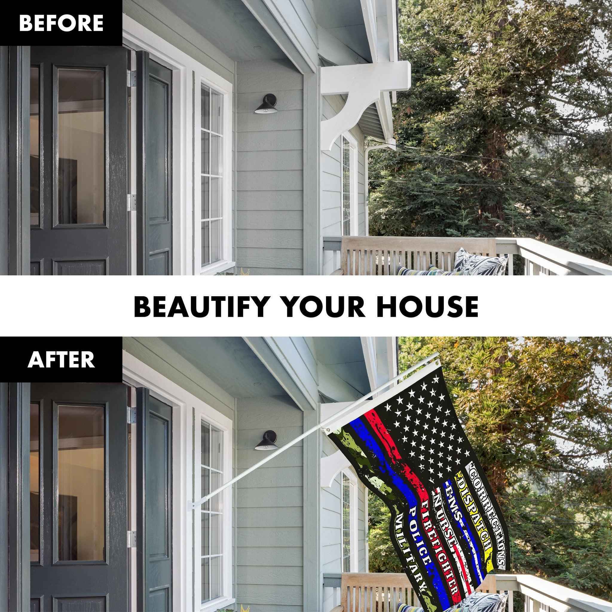G128 Combo Pack: 6 Ft Tangle Free Aluminum Spinning Flagpole (White) & Thin Line First Responders American Flag 3x5 Ft, LiteWeave Pro Series Printed 150D Polyester | Pole with Flag Included
