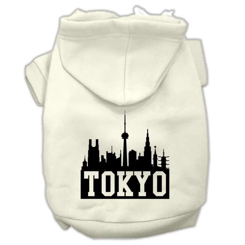 Tokyo Skyline Screen Print Pet Hoodies Cream Size Xxl