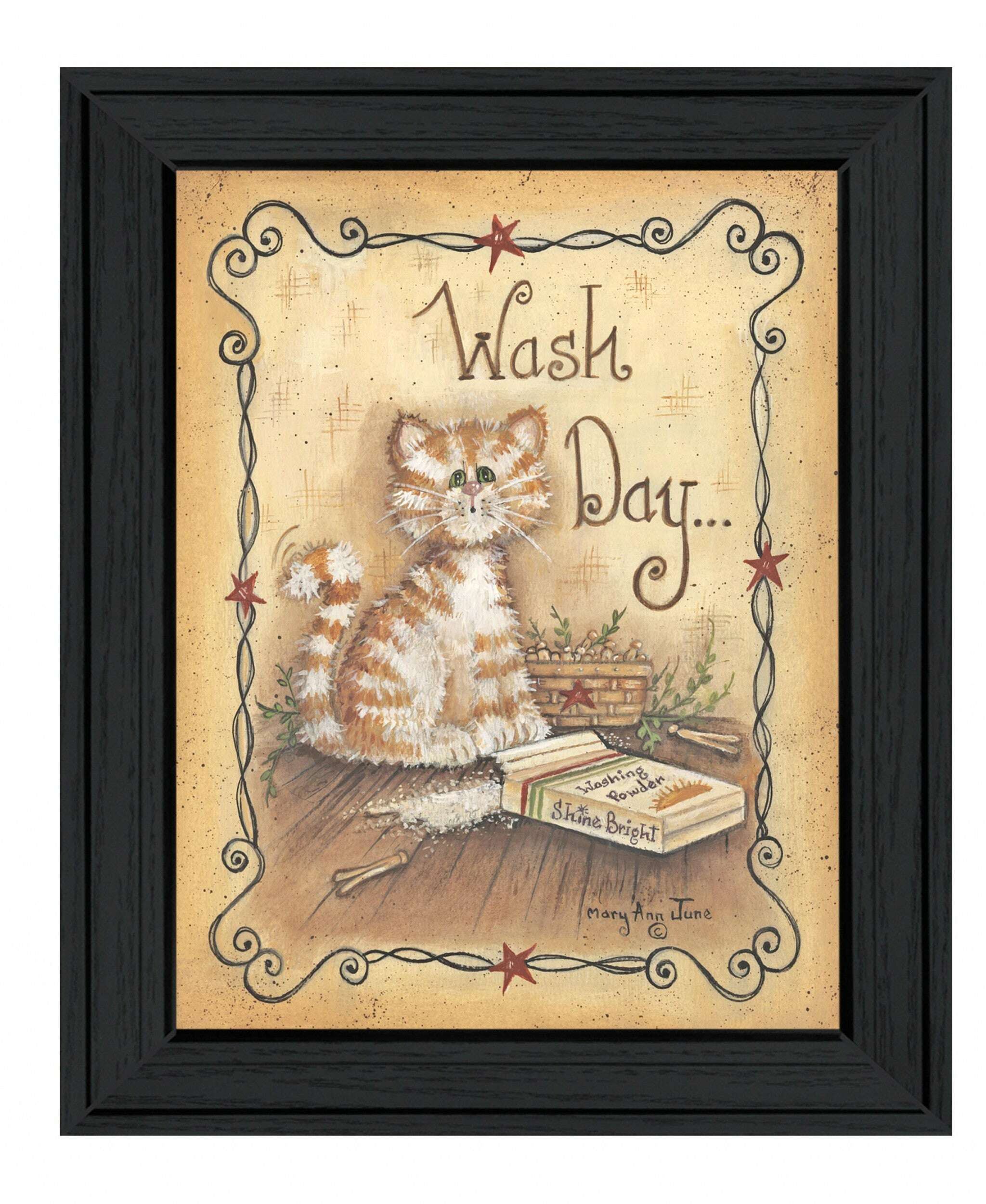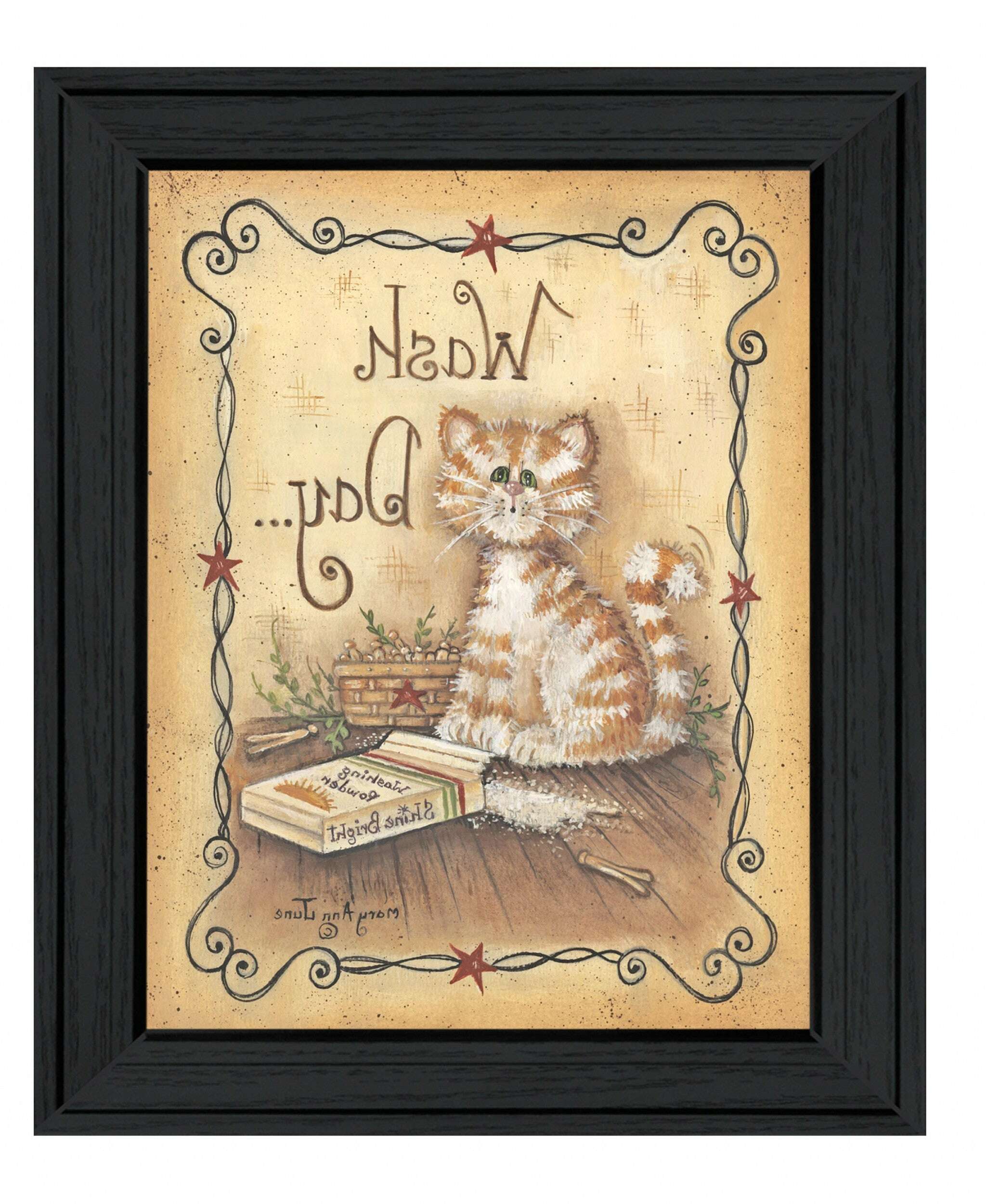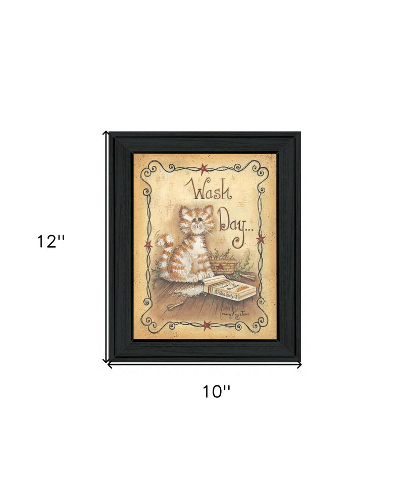The wash day kitty cat 2 black framed print wall art is the perfect decorative accessory for your home. Evoke memories of your favorite feline with this special cat inspired art. This print is a visual artistic expression that allows you to decorate your space in style. Reproduced for you on wood, this hanging decorative accent will be a trendy and fashionable way to dress your walls in a rustic and modern farmhouse vibe. Hang on your wall to add some up to date fashion and decoration. Instantly liven up your space with this art that brings color and dimension to your walls. 12 inches H x 10 inches W x 1 inches D