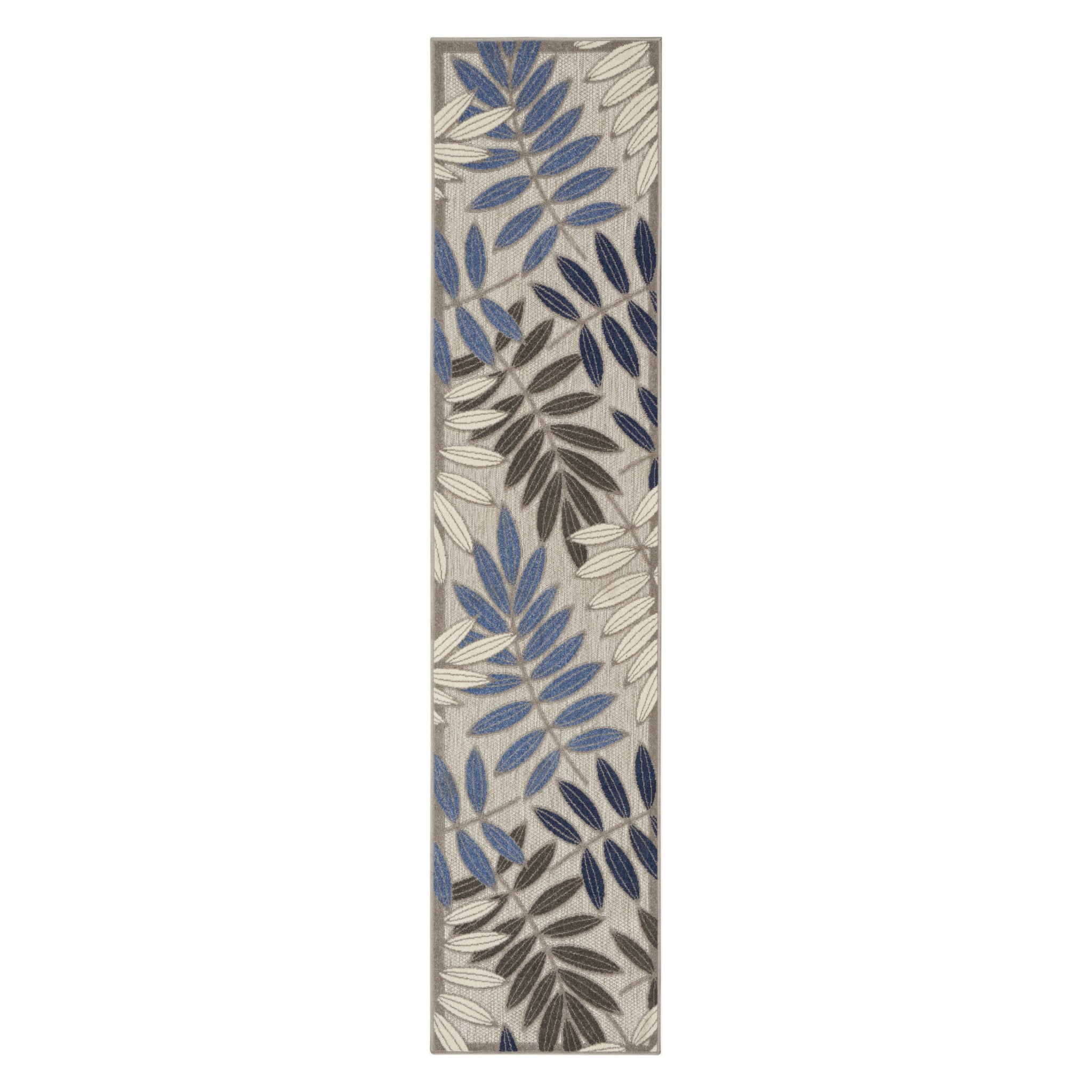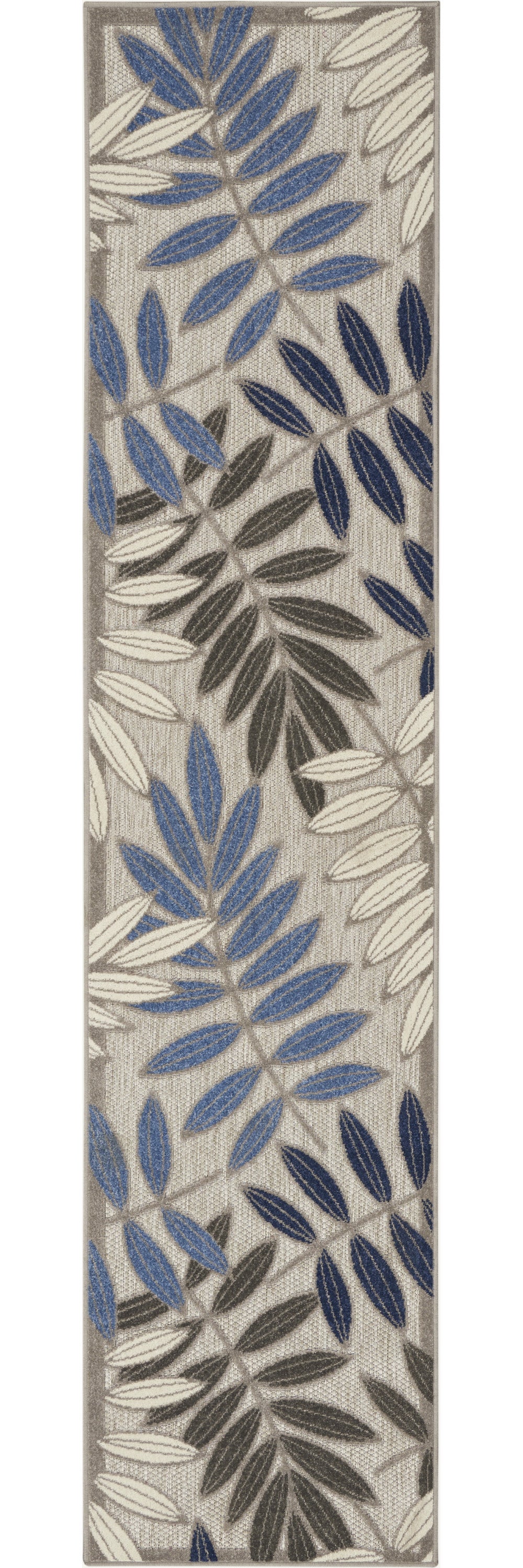 Add great coloration and comfortable texture to your space with this 10-foot blue and gray floral indoor outdoor area rug. This rectangle shaped rug features a floral design that will work well both indoors or out. A classic shape marries with good looking design for your living room, hall, bedroom, porch, patio, or poolside. Makes a great way to dress up your patio, porch, or poolside, but also works well as a durable and easy to maintain option in the kitchen, family room, or mudroom. 27-inch h x 120-inch w x 1-inch d.