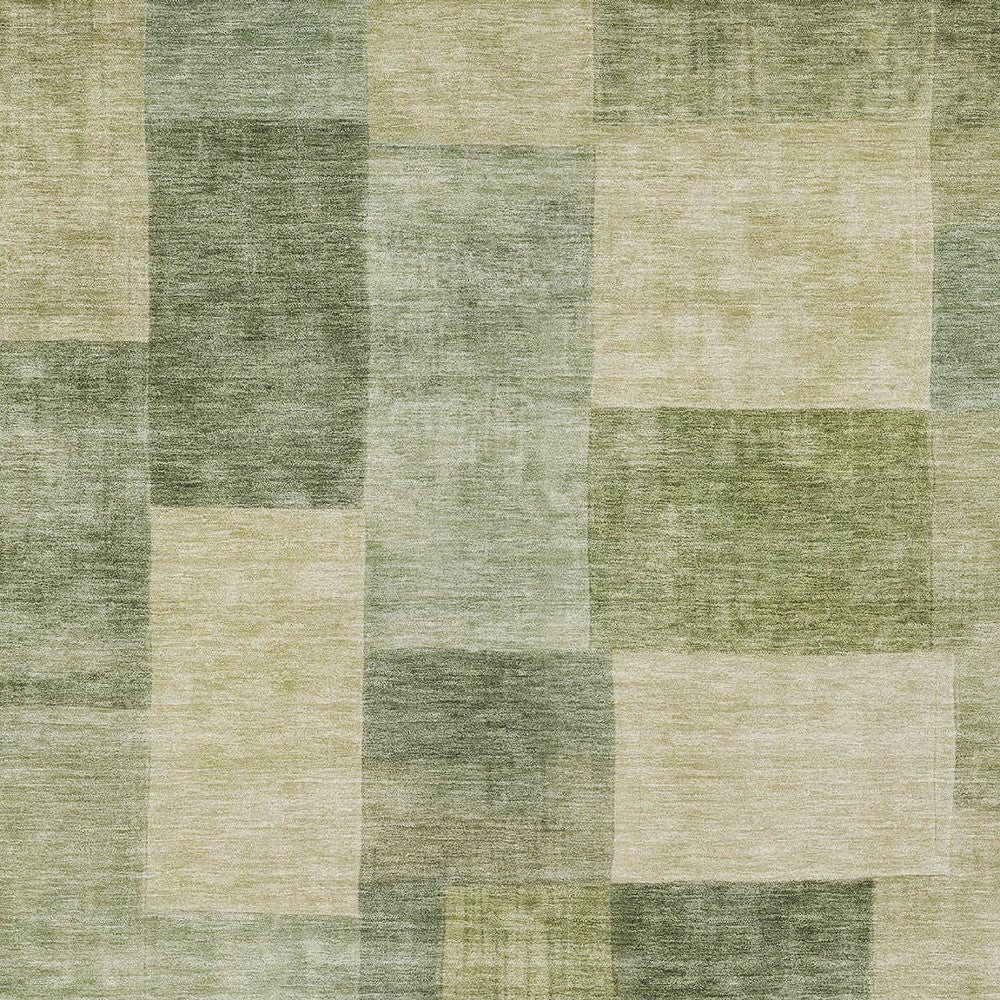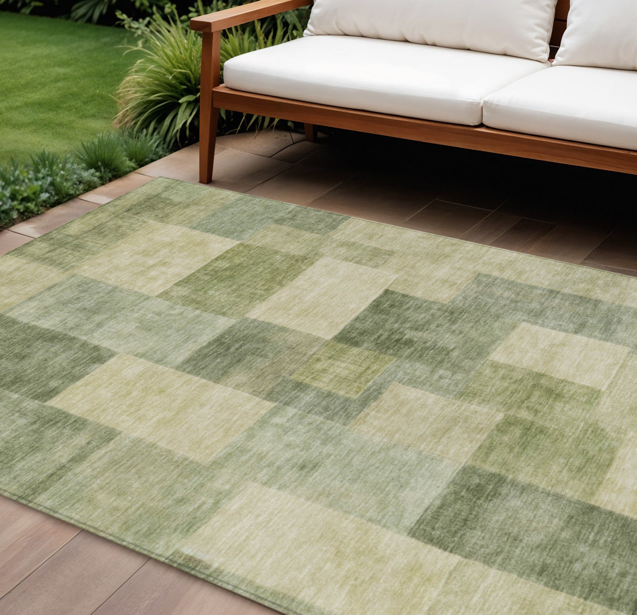 10' X 14' Artichoke Green Geometric Washable Indoor Outdoor Area Rug