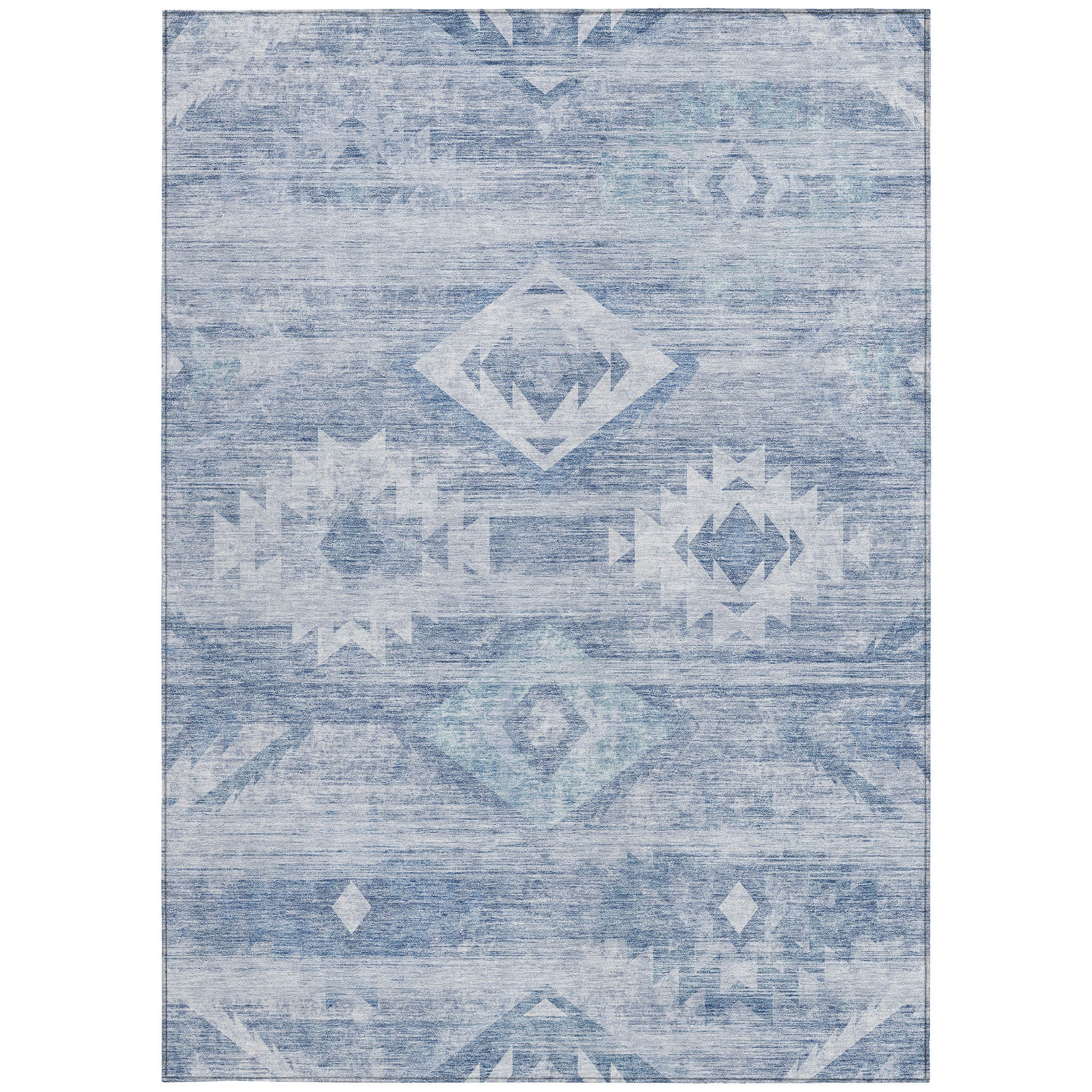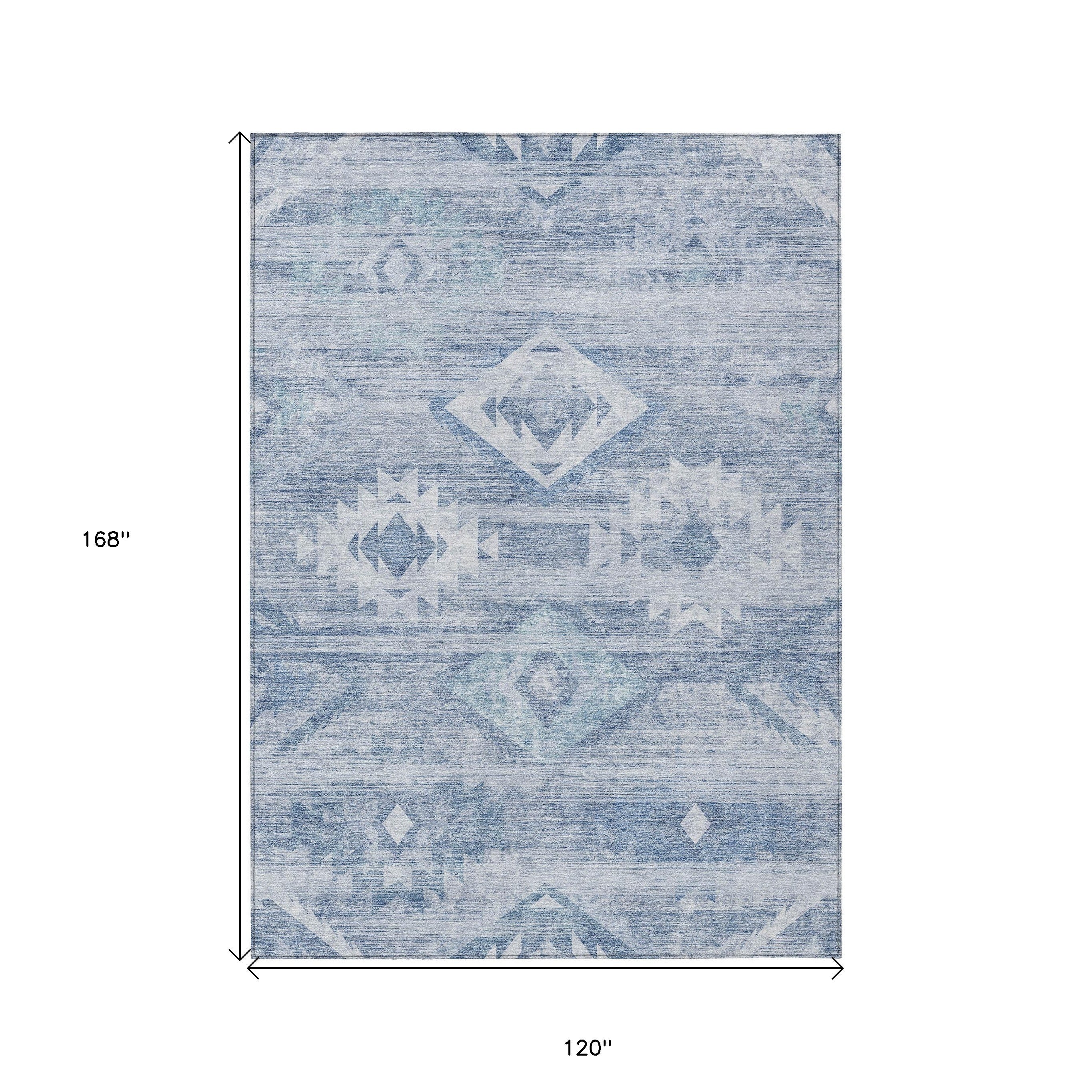 10' X 14' Denim Blue And Sky Blue Southwestern Washable Indoor Outdoor Area Rug