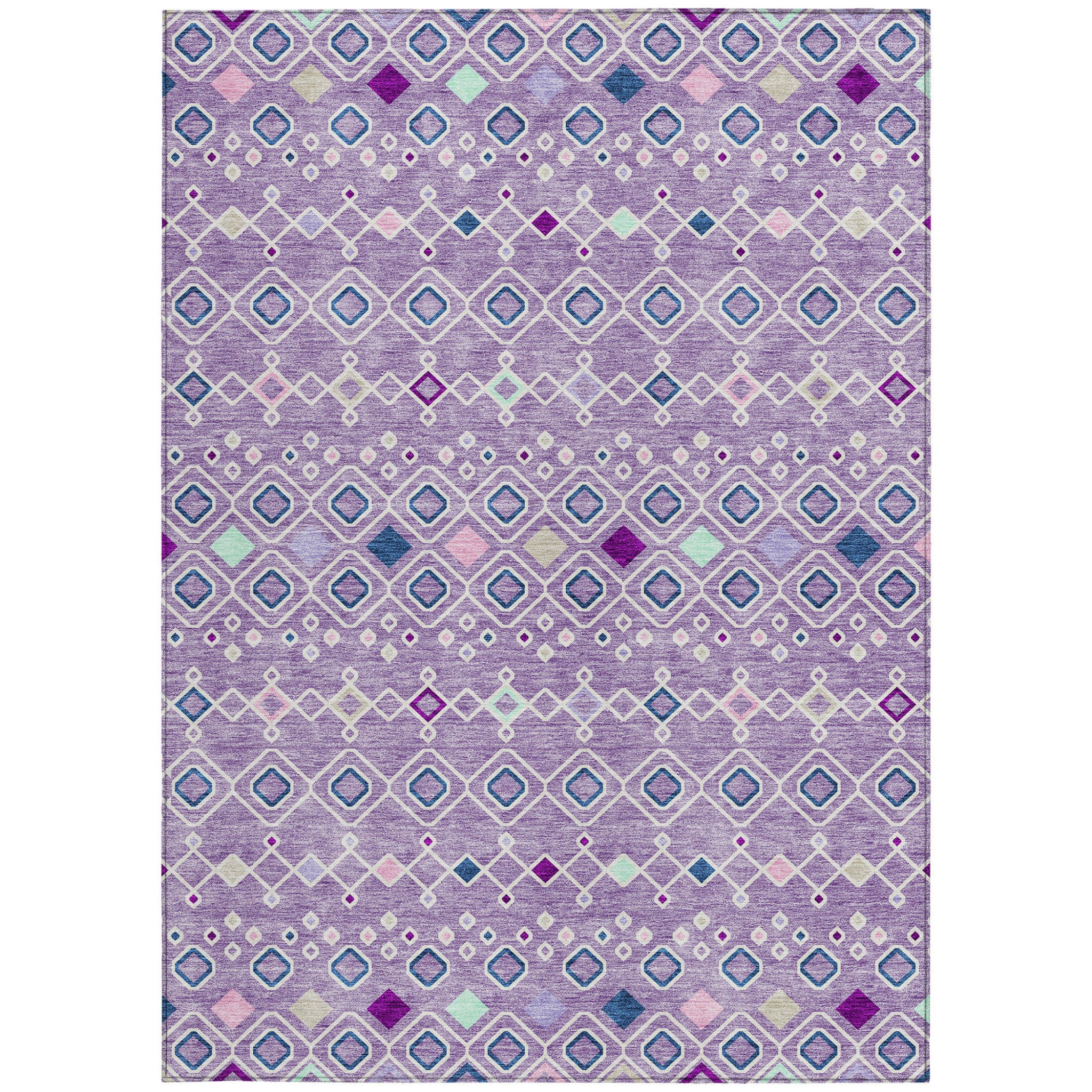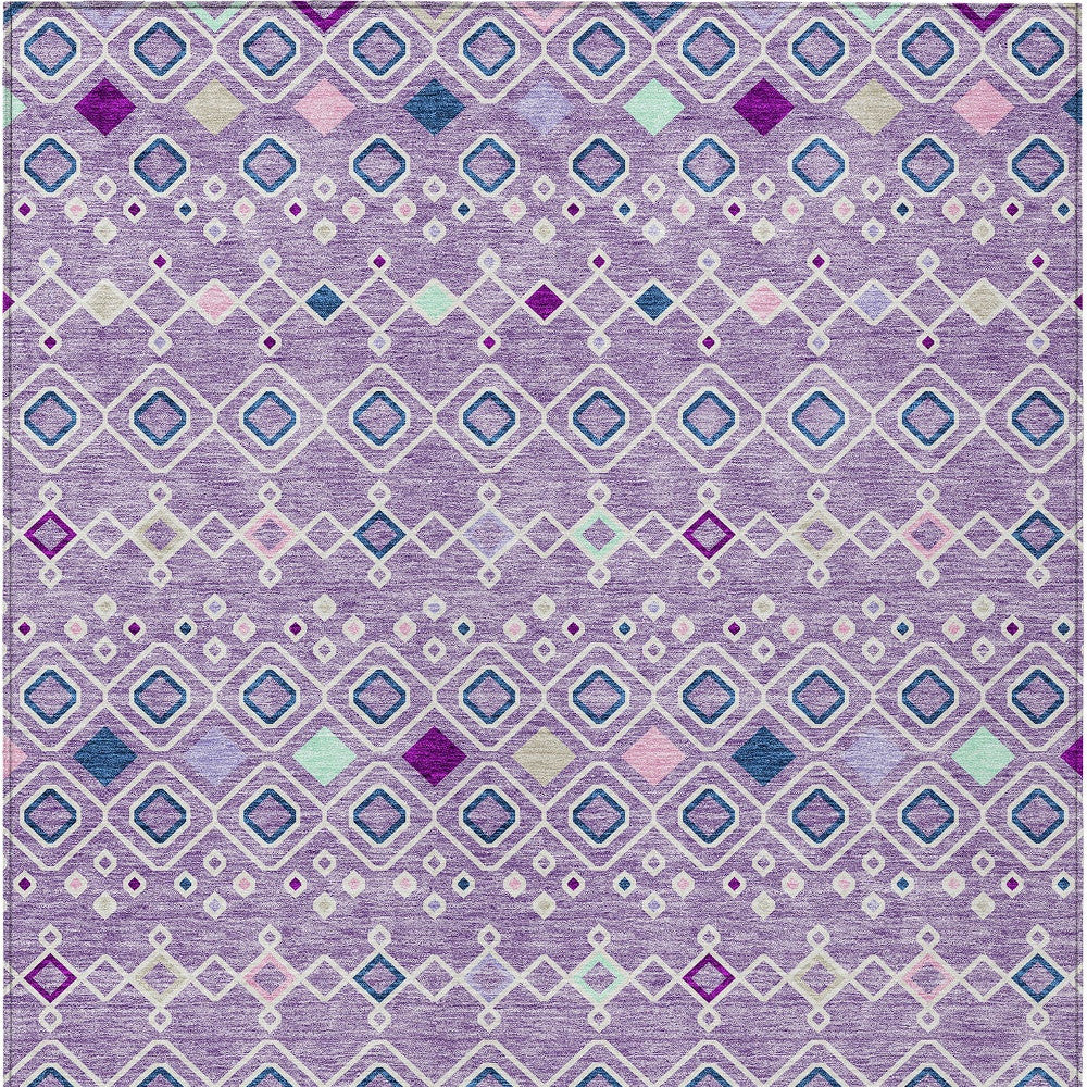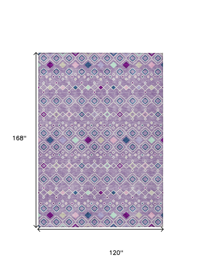 10' X 14' Lavender Ivory And Blue Geometric Washable Indoor Outdoor Area Rug