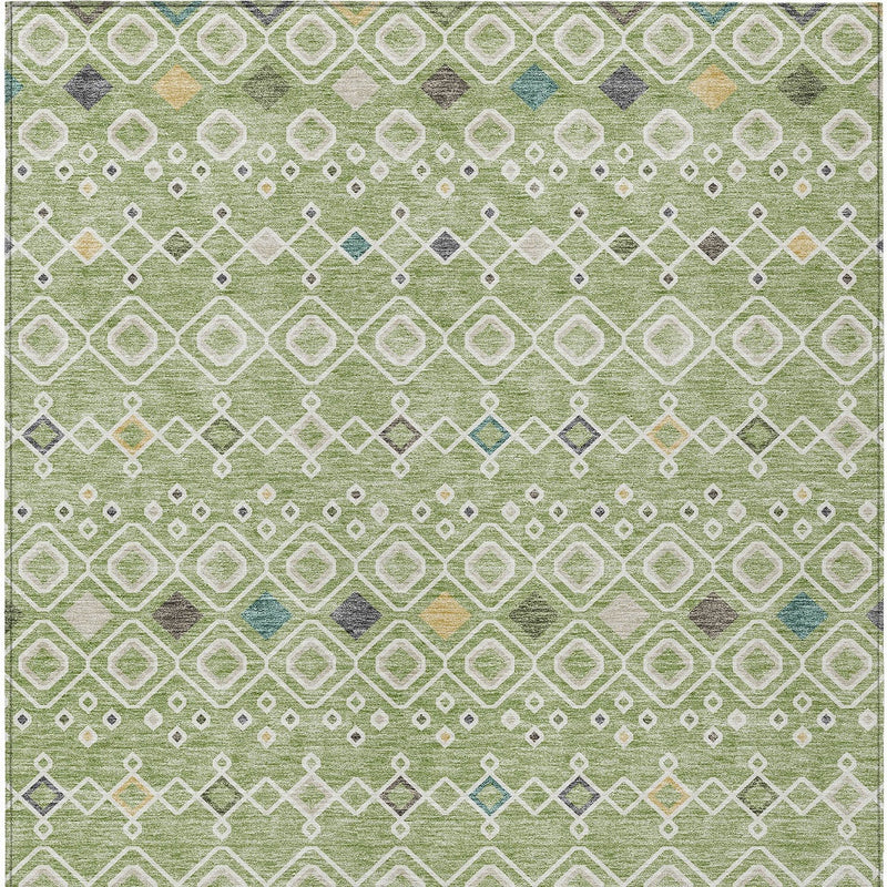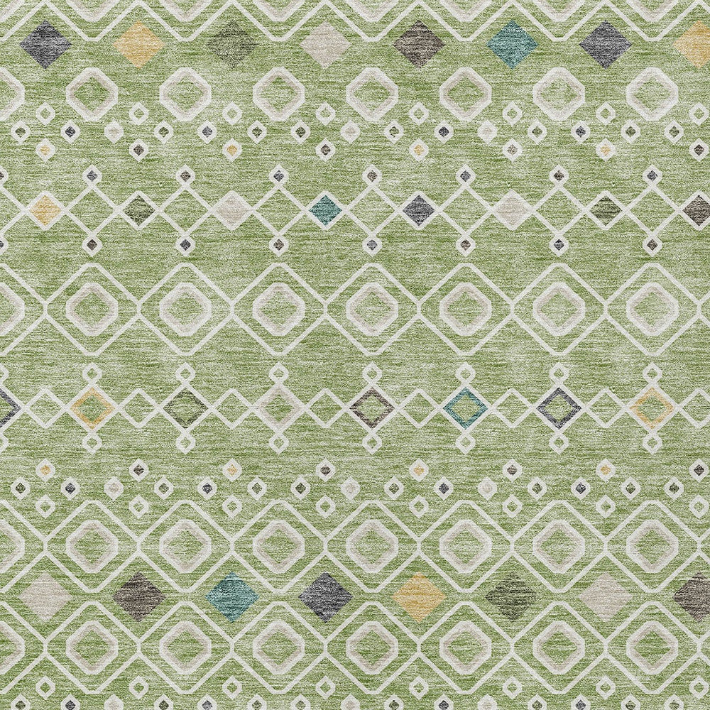 10' X 14' Sage Ivory And Teal Blue Geometric Washable Indoor Outdoor Area Rug