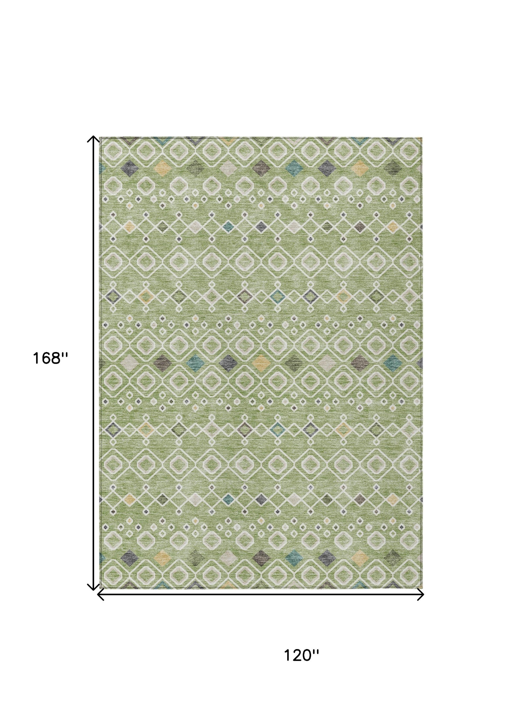 This 10-foot x 14-foot sage ivory and teal blue geometric washable indoor outdoor area rug, is a great way to add warmth to a room. This rectangle shaped rug features a geometric design that will work well both indoors or out. A classic shape marries with good looking design for your living room, hall, bedroom, porch, patio, or poolside. Ideal for outdoor spaces or high traffic areas with kids and pets, this rug is made from heavy duty polyester that is stain resistant to help repel water, dirt, and stains. Versatile in use, durable, and easy to maintain, this rug is an ideal solution to add a decorative and inviting touch to your indoor or outdoor space. 120-inch h x 168-inch w x 0.19-inch d.