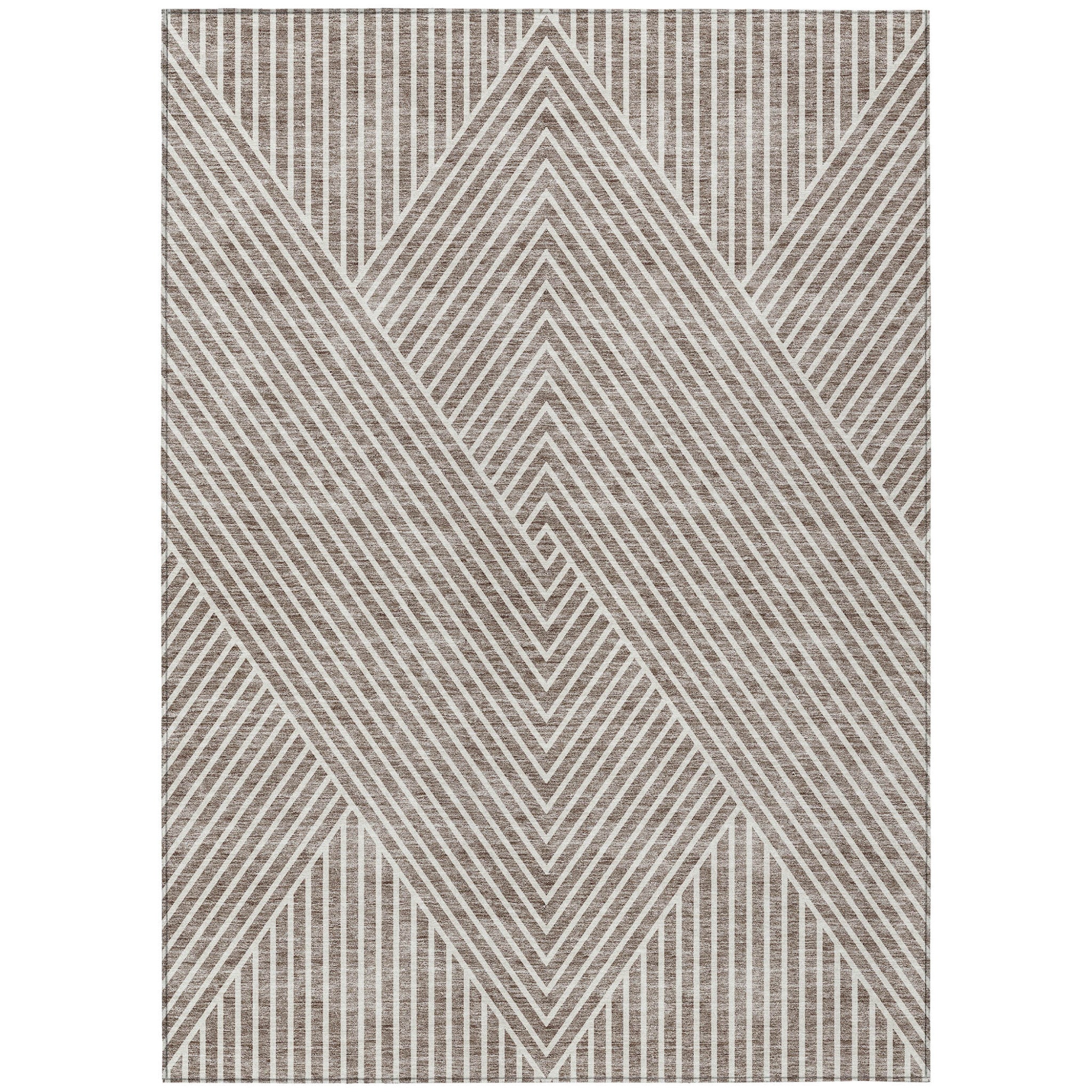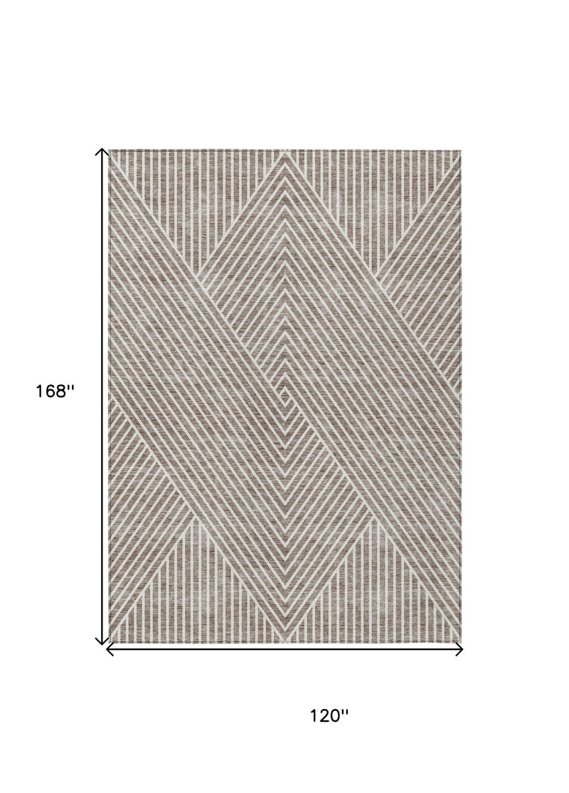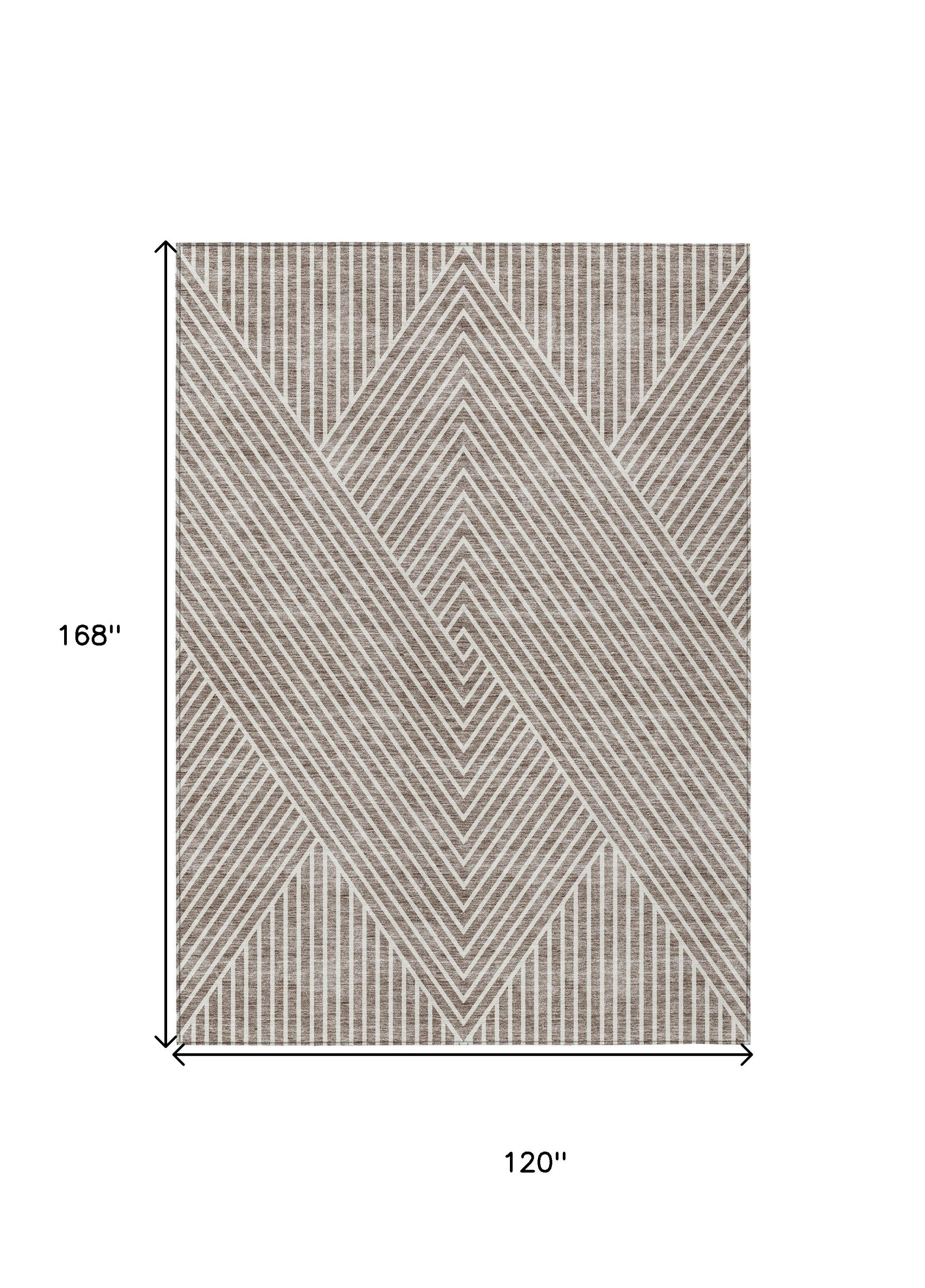 10' X 14' Taupe And Ivory Geometric Washable Indoor Outdoor Area Rug