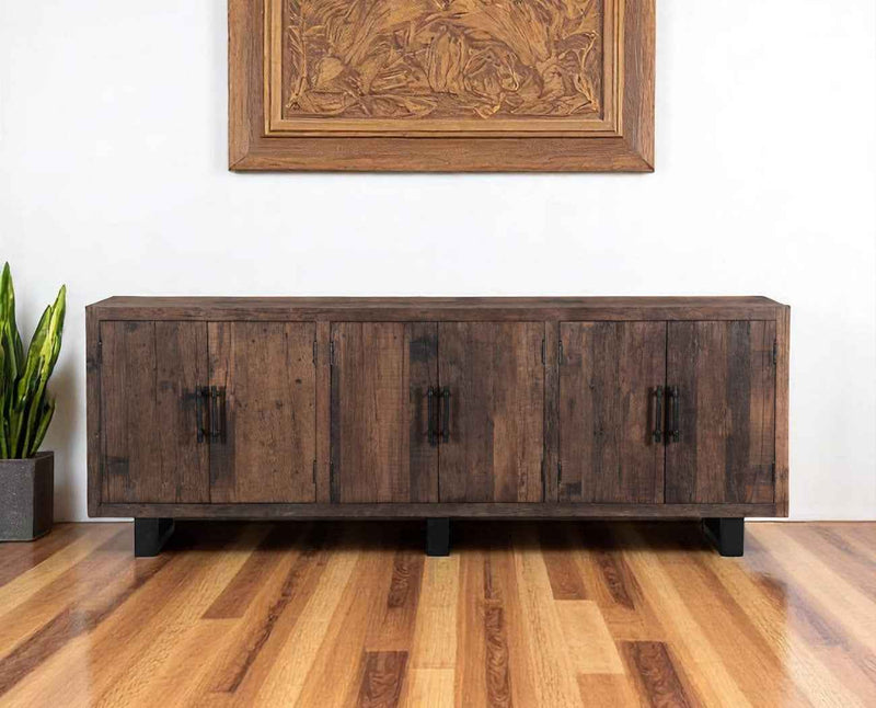 100" Dark Brown Distressed Reclaimed Wood Sideboard with Six Doors