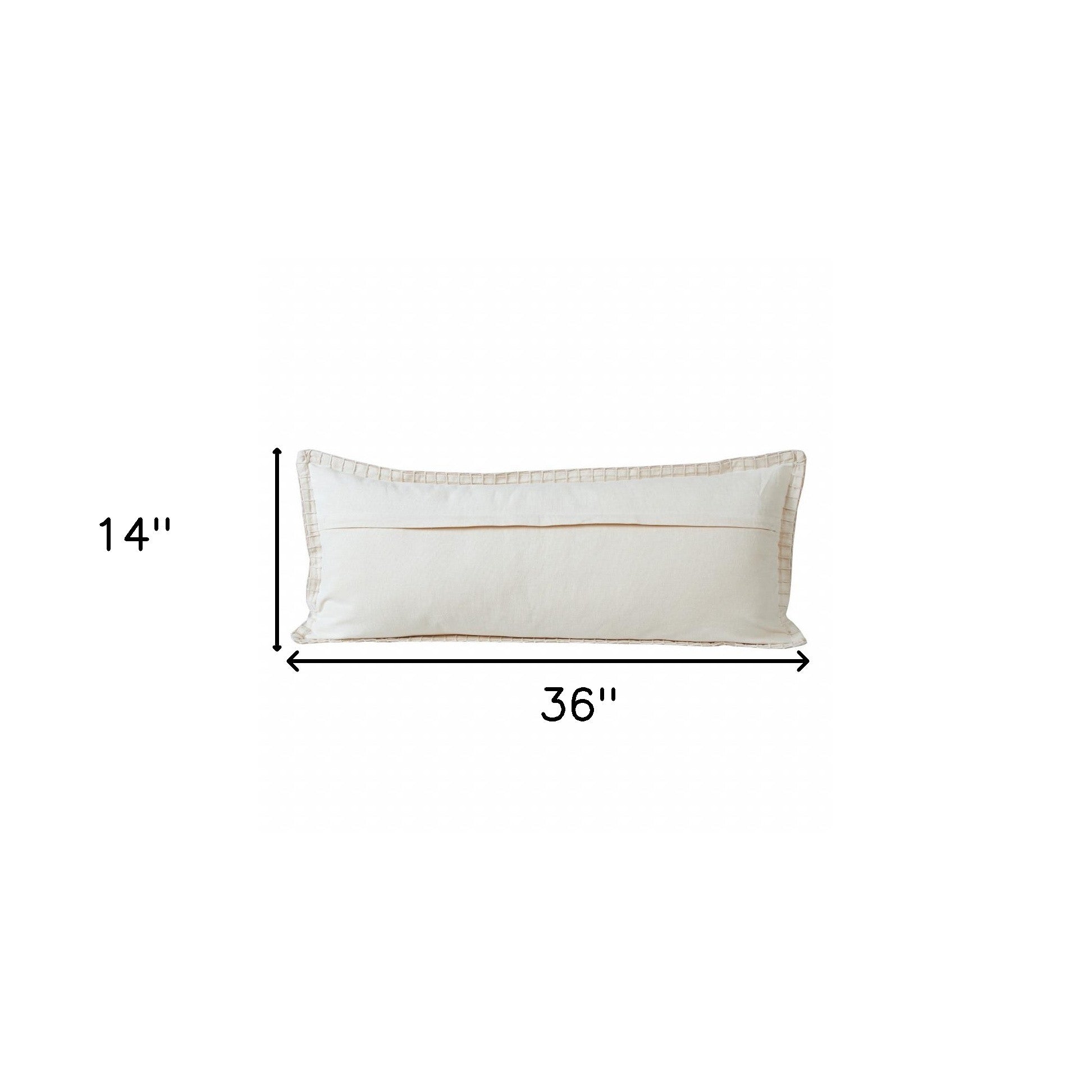 14" X 36" Beige 100% Cotton Zippered Pillow