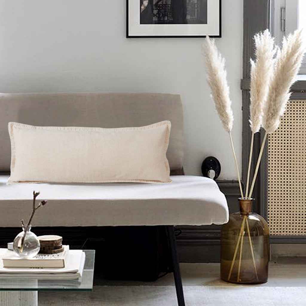 The perfect complement to your sofa, favorite chair, or bed, this 14" x 36" beige 100% cotton zippered pillow is a great decorative accent. Soft and textural beige 100% cotton has been used to make this pillow look and feel like a real treasure. Great to use on its own or mix with other decorations for the perfect look. Decorative pillows are a great way to change up the look and feel of your space easily and quickly. 14" H x 14" W x 36" D