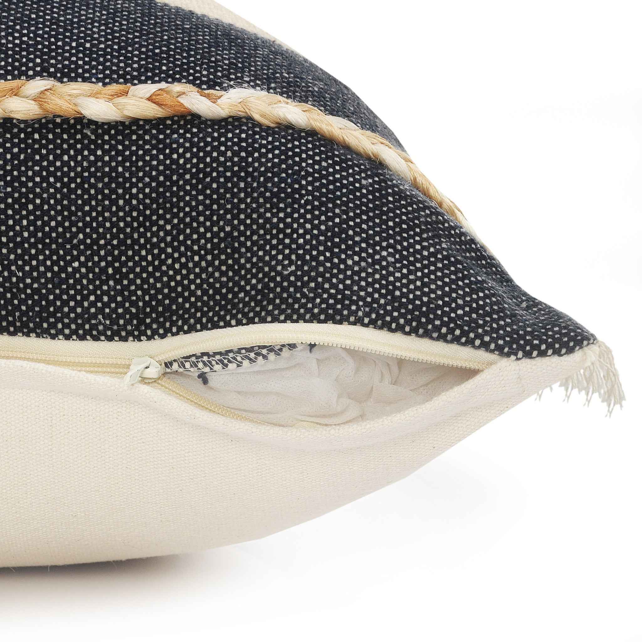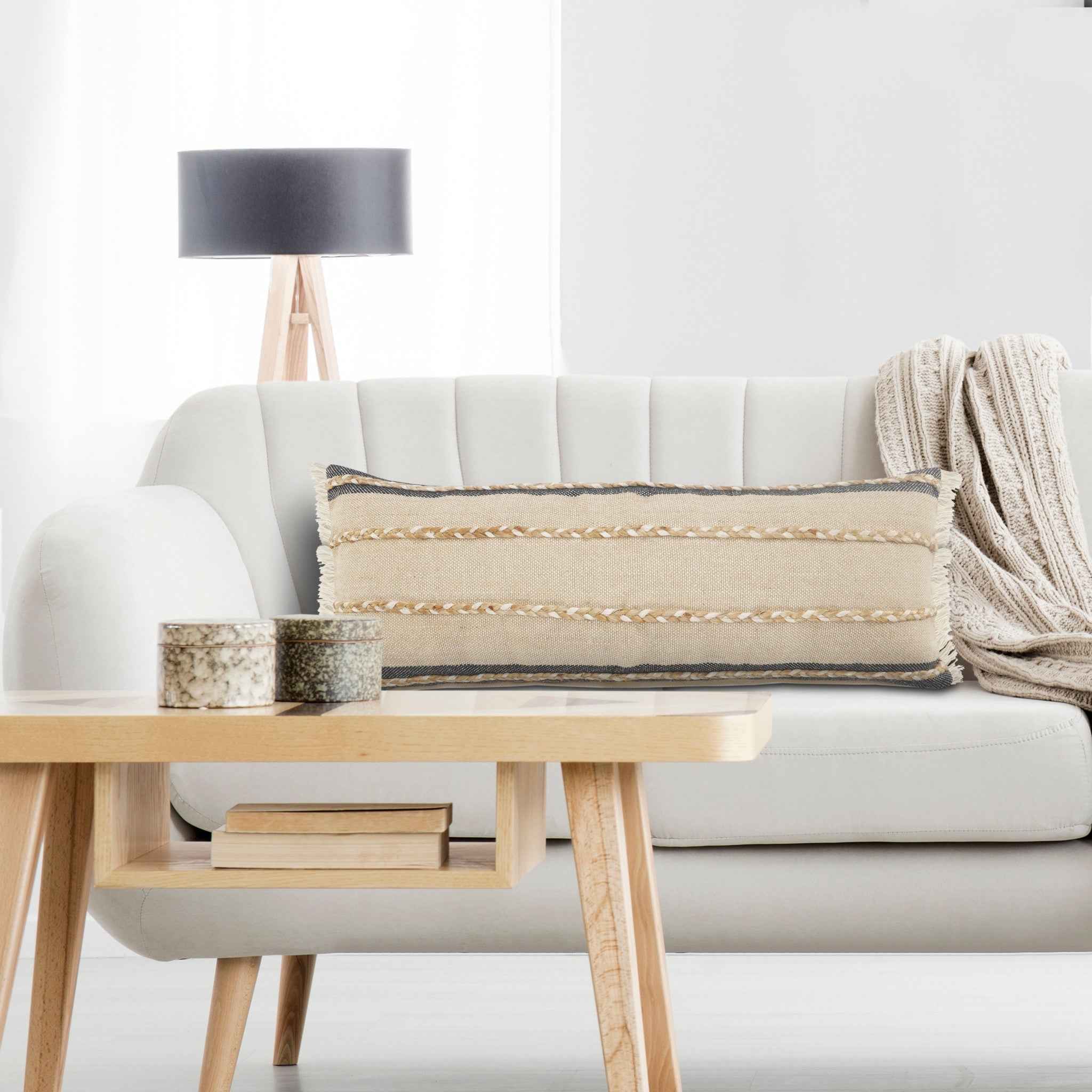 14" X 36" Black Tan And Taupe Jute Striped Zippered Pillow - 跳到内容