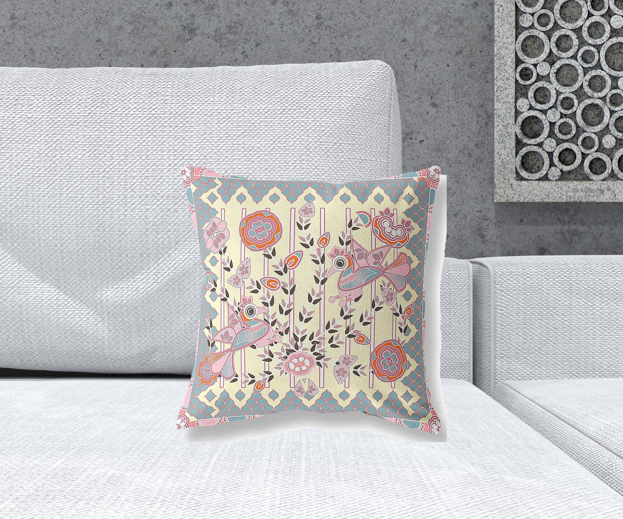 16" x 16" Yellow Peacock Blown Seam Floral Indoor Outdoor Throw Pillow