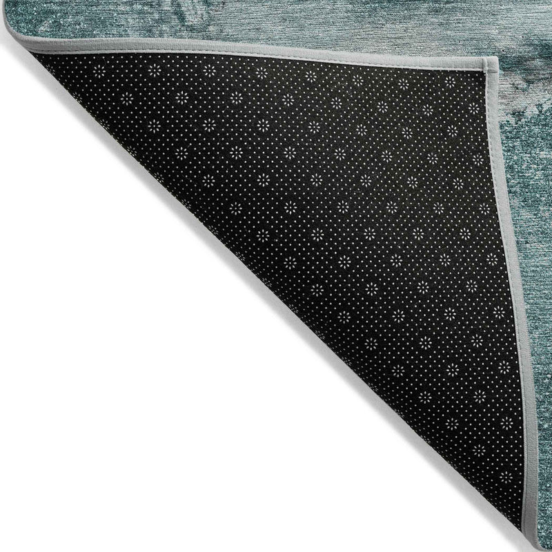 2' X 8' Teal Abstract Washable Indoor Outdoor Runner Rug