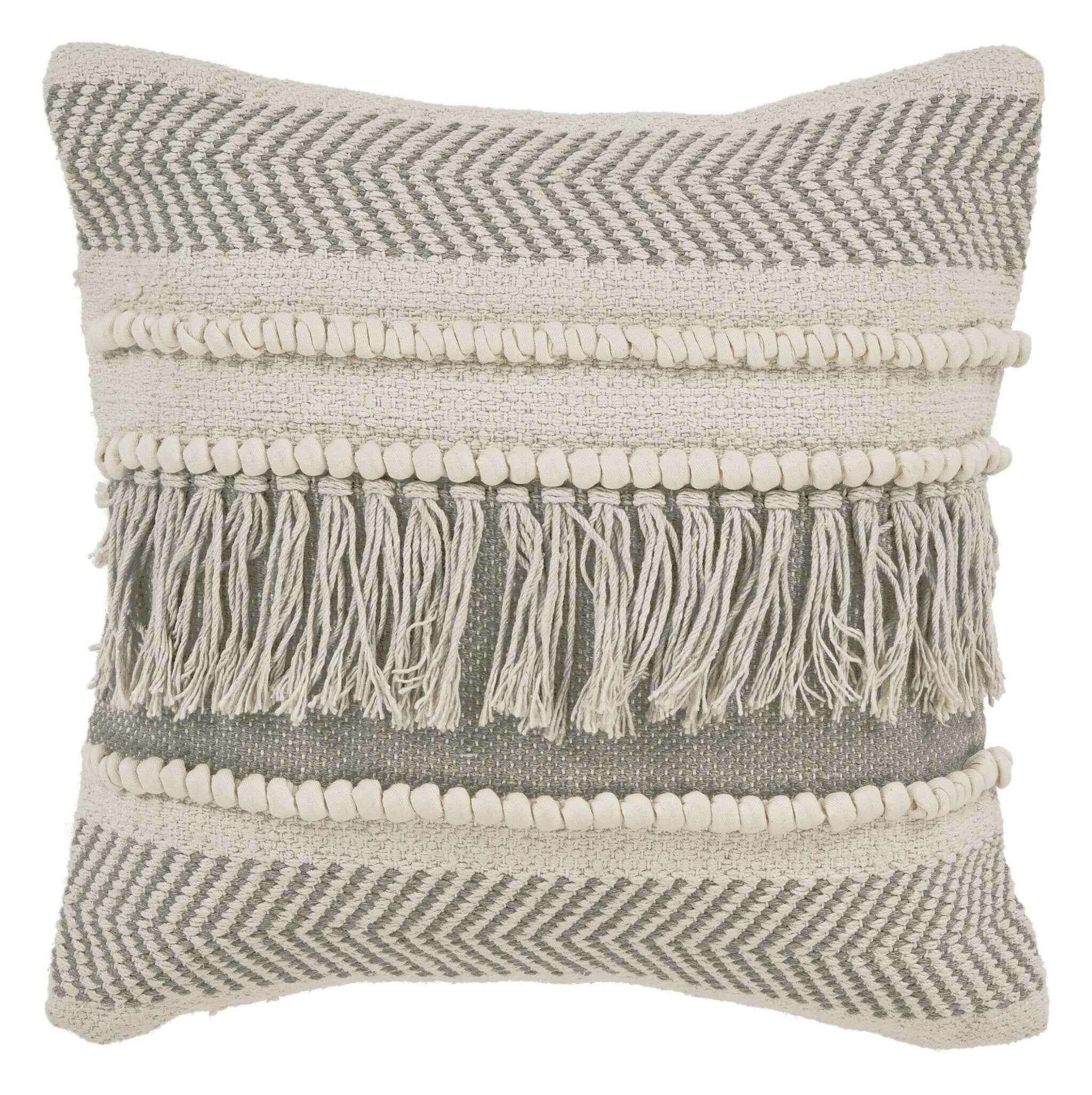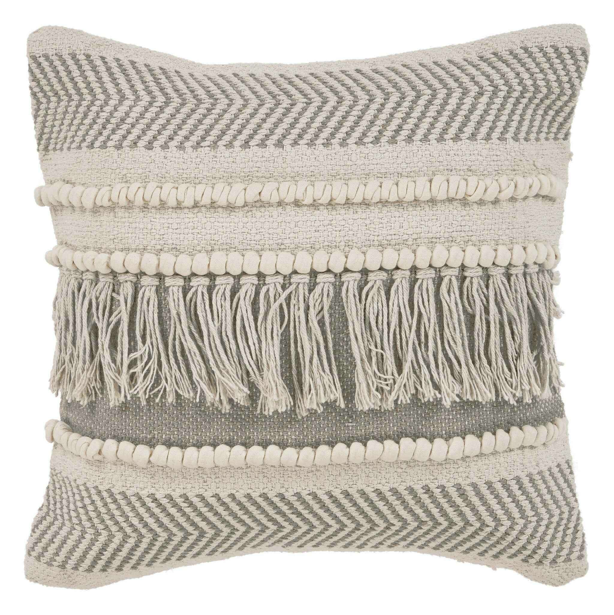 This 20-inch x 20-inch beige and ivory chevron cotton zippered pillow with fringe will add a beautiful decorative accent to your decor. The beige and ivory coloring of the soft and long lasting 100% cotton will add dimension and texture to your space. Charming decorative fringe give this design texture along with a hand-crafted look and feel. Super soft and built to hold its shape, this polyfill pillow is a great option. Decorative throw pillows not only add color and dimension to your space but can be comfy and supportive when you are lounging and cuddling as well. Decorative pillows are a great way to change up the look and feel of your space easily and quickly. 20-inch H x 20-inch W x 4-inch D