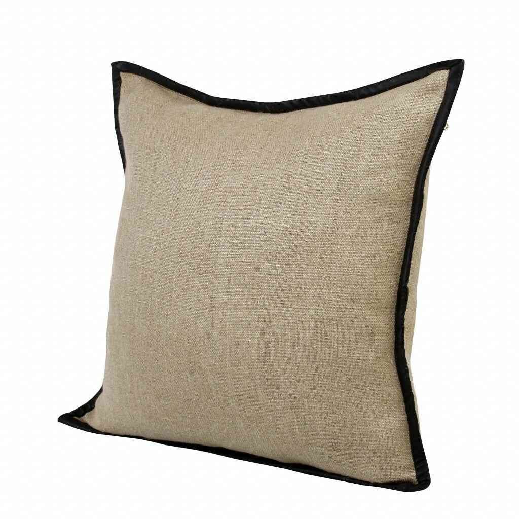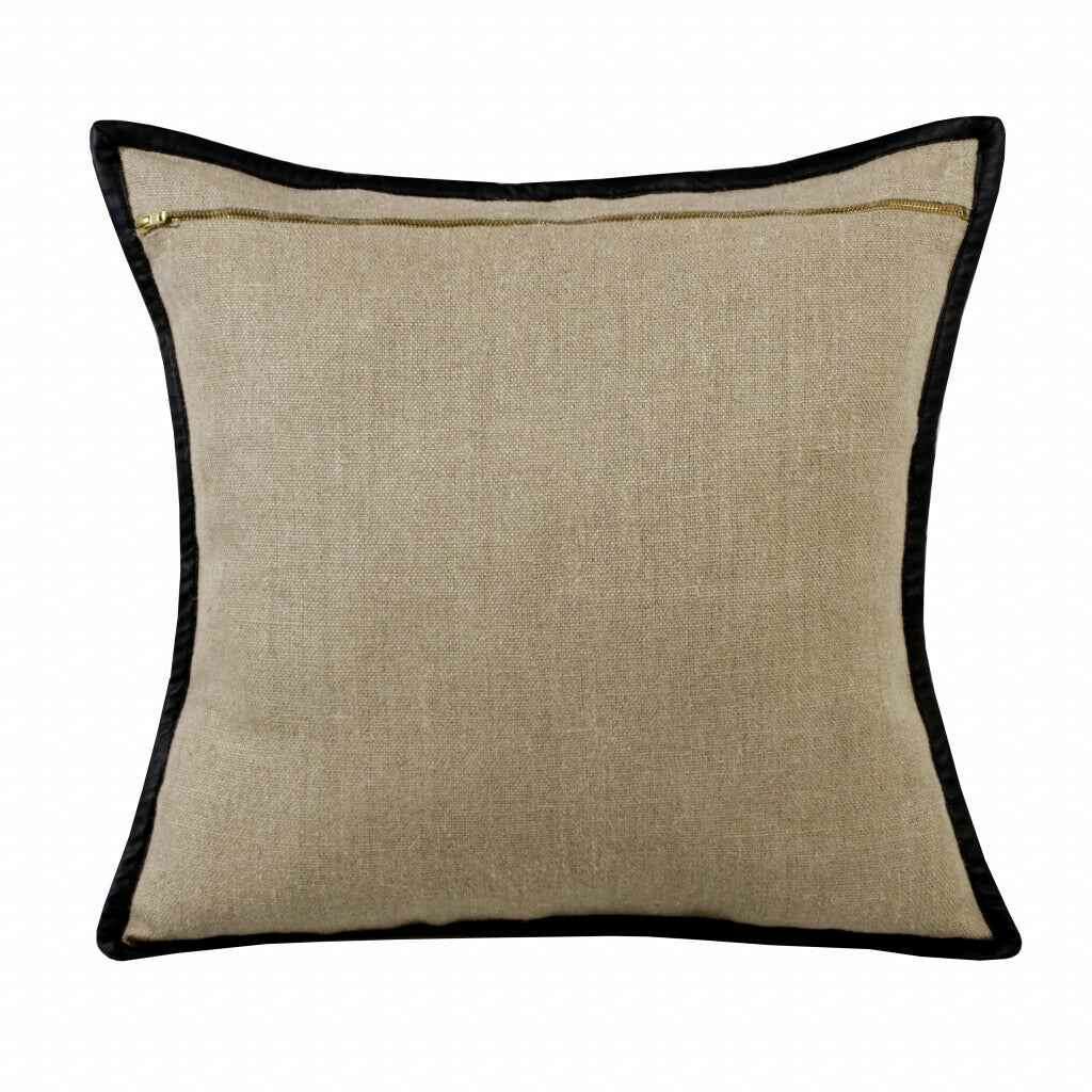 20" X 20" Tan And Black Linen Zippered Pillow