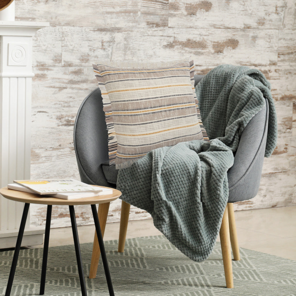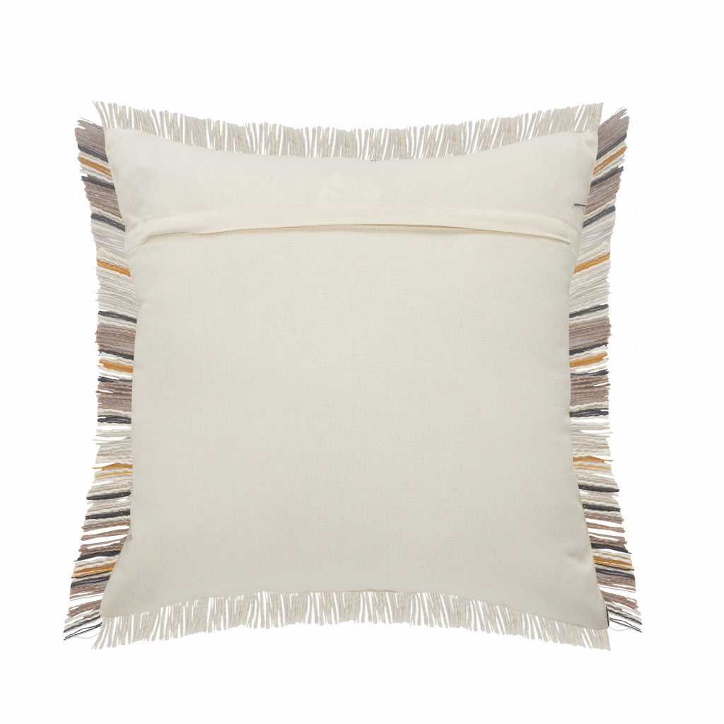 20" X 20" Taupe Gray Yellow And Navy 100% Cotton Striped Zippered Pillow