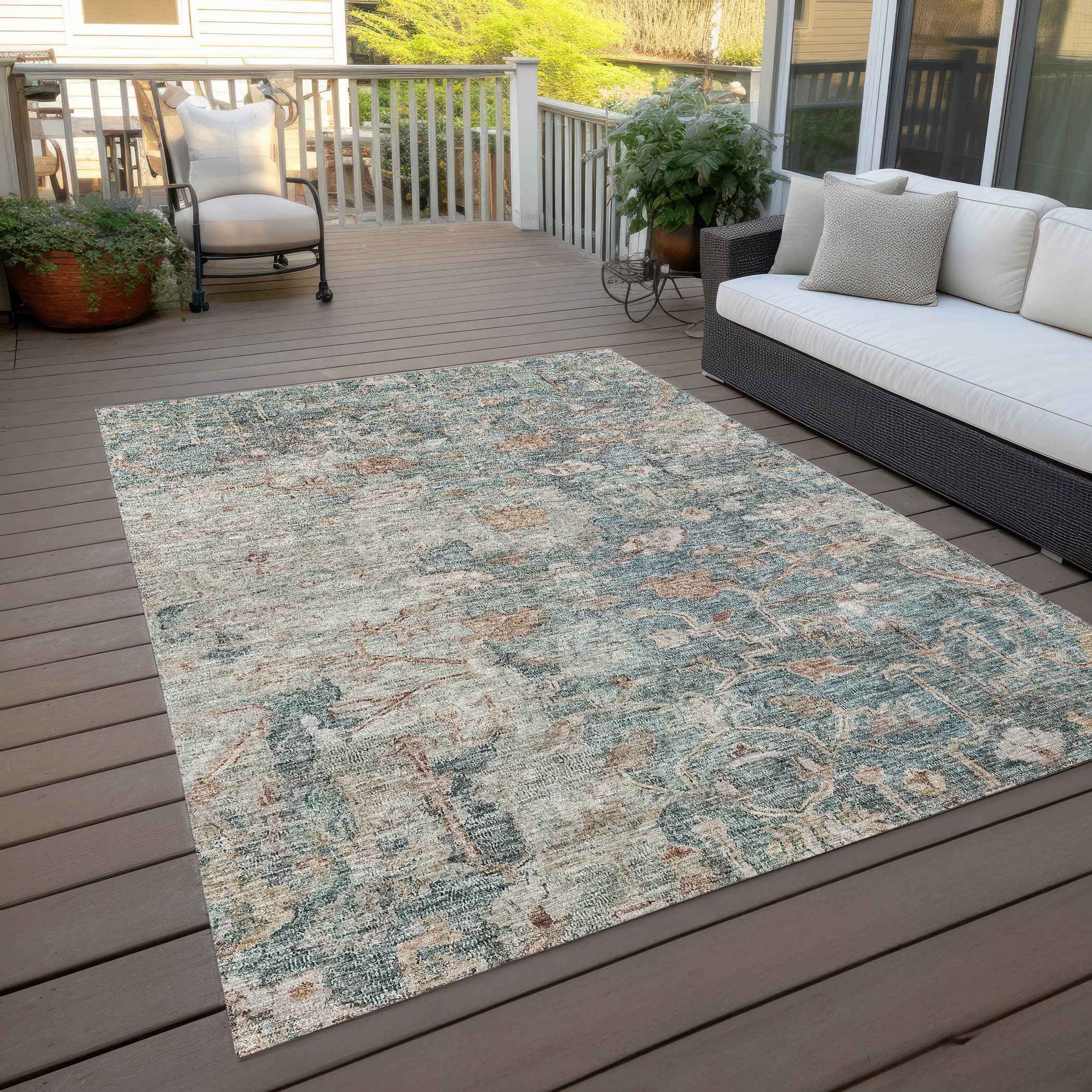Add great coloration and comfortable texture to your space with this 3-foot x 5-foot green blue and gray oriental washable indoor outdoor area rug. This rectangle shaped rug features a oriental design that will work well both indoors or out. A classic shape marries with good looking design for your living room, hall, bedroom, porch, patio, or poolside. Ideal for outdoor spaces or high traffic areas with kids and pets, this rug is made from heavy duty polyester that is stain resistant to help repel water, dirt, and stains. Versatile in use, durable, and easy to maintain, this rug is an ideal solution to add a decorative and inviting touch to your indoor or outdoor space. 36-inch h x 60-inch w x 0.19-inch d.
