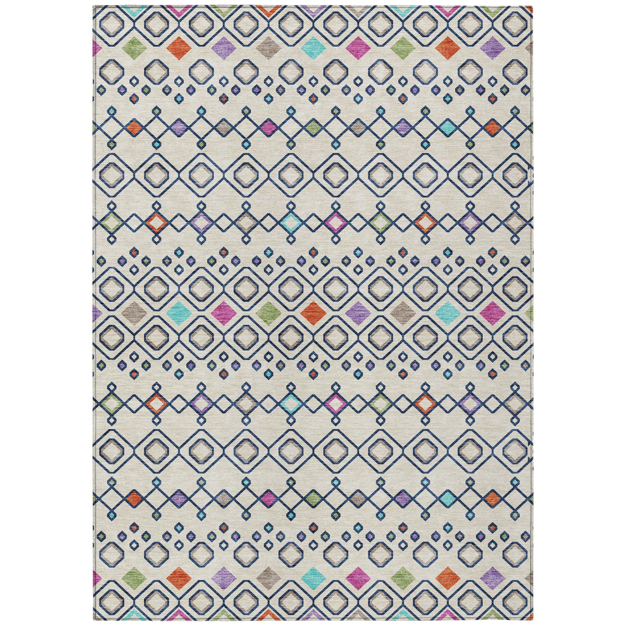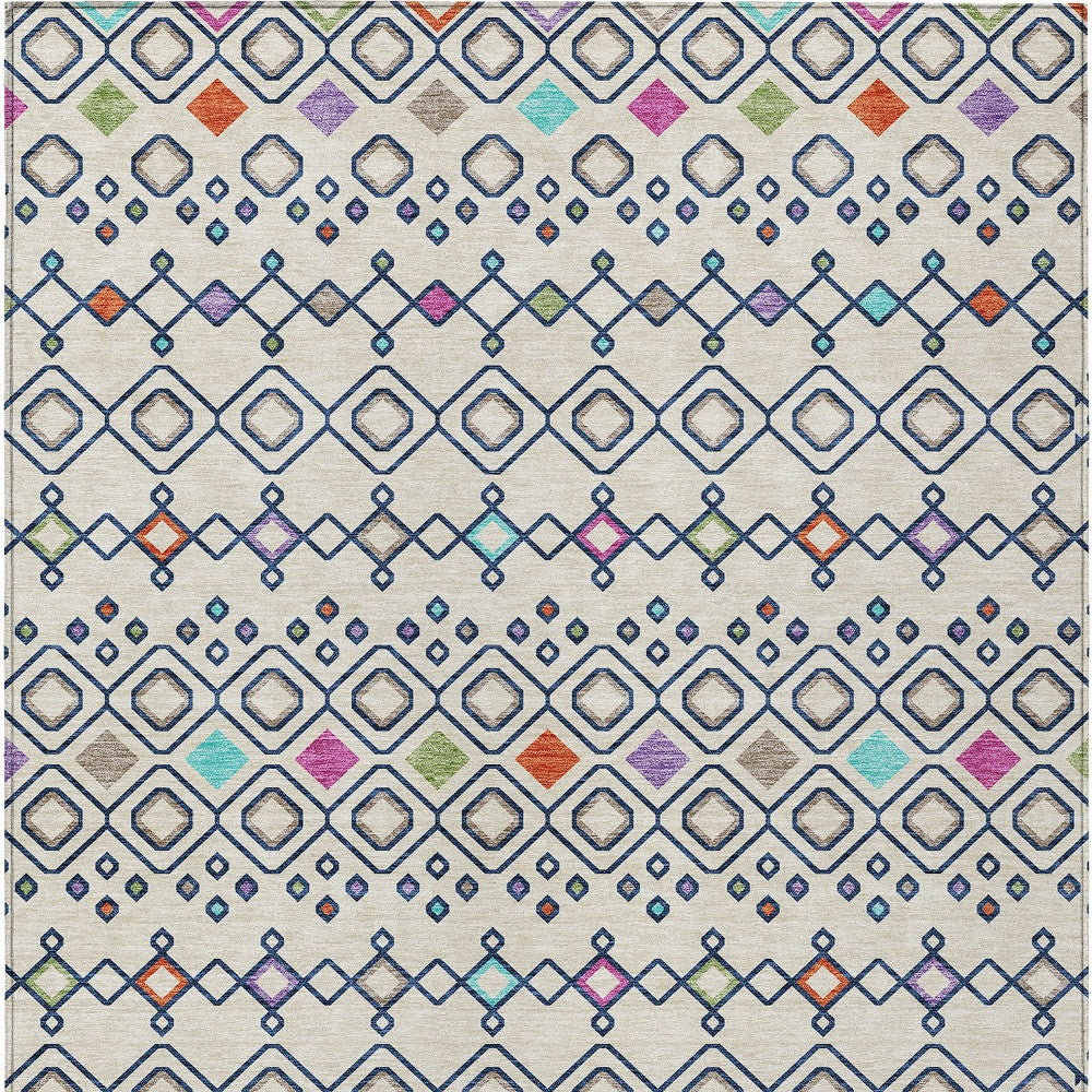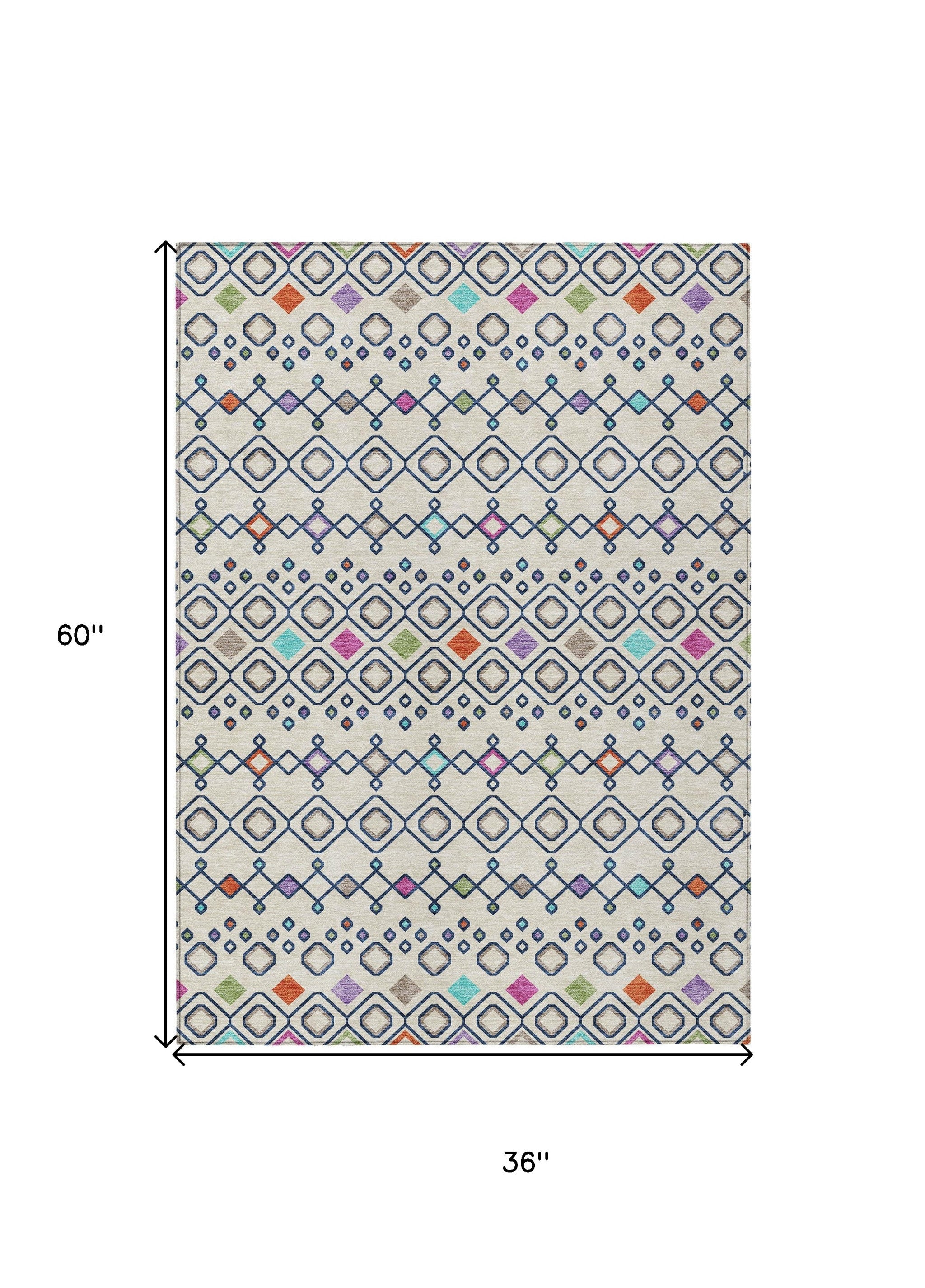 3' X 5' Linen Pink And Orange Geometric Washable Indoor Outdoor Area Rug