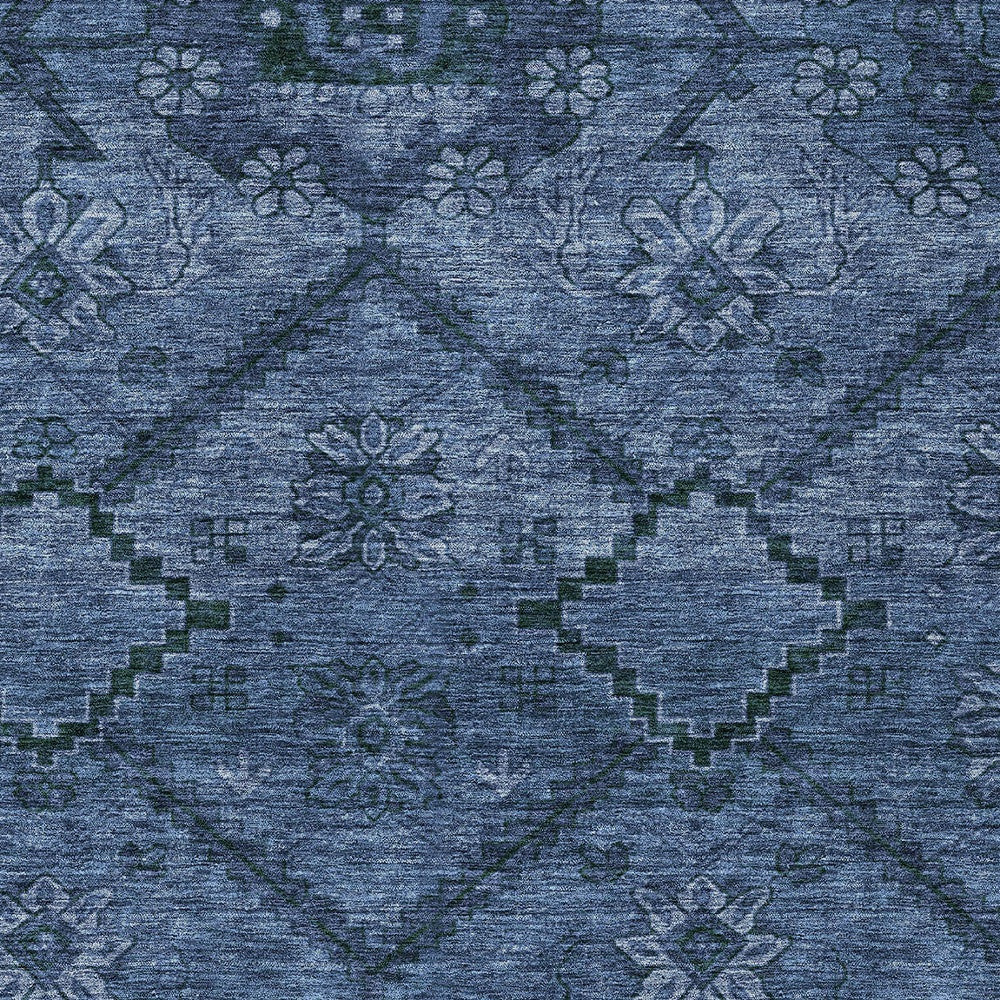 3' X 5' Navy Blue And Denim Blue Floral Washable Indoor Outdoor Area Rug