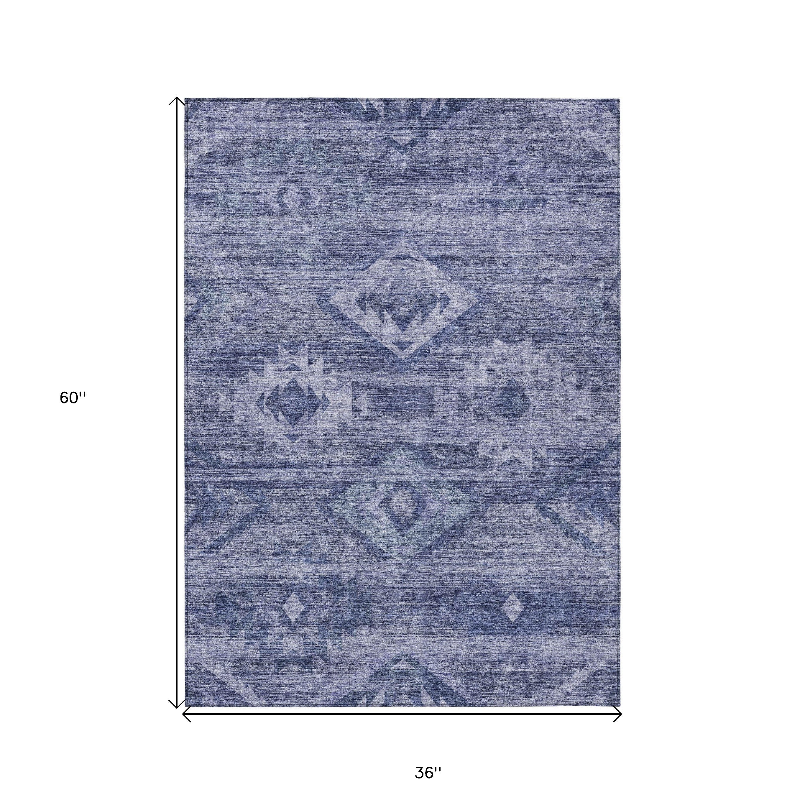 3' X 5' Navy Blue And Denim Blue Southwestern Washable Indoor Outdoor Area Rug