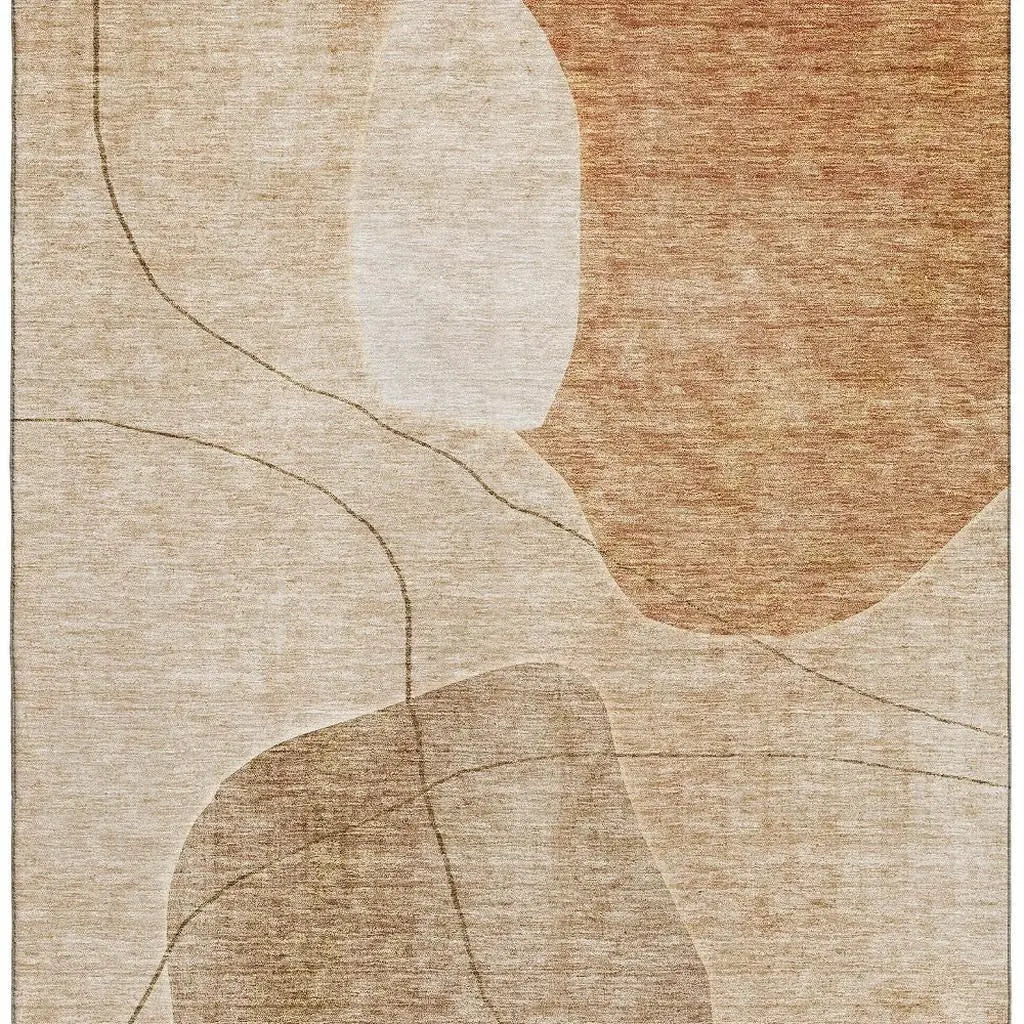3' X 5' Rust And Copper Abstract Washable Area Rug With UV Protection
