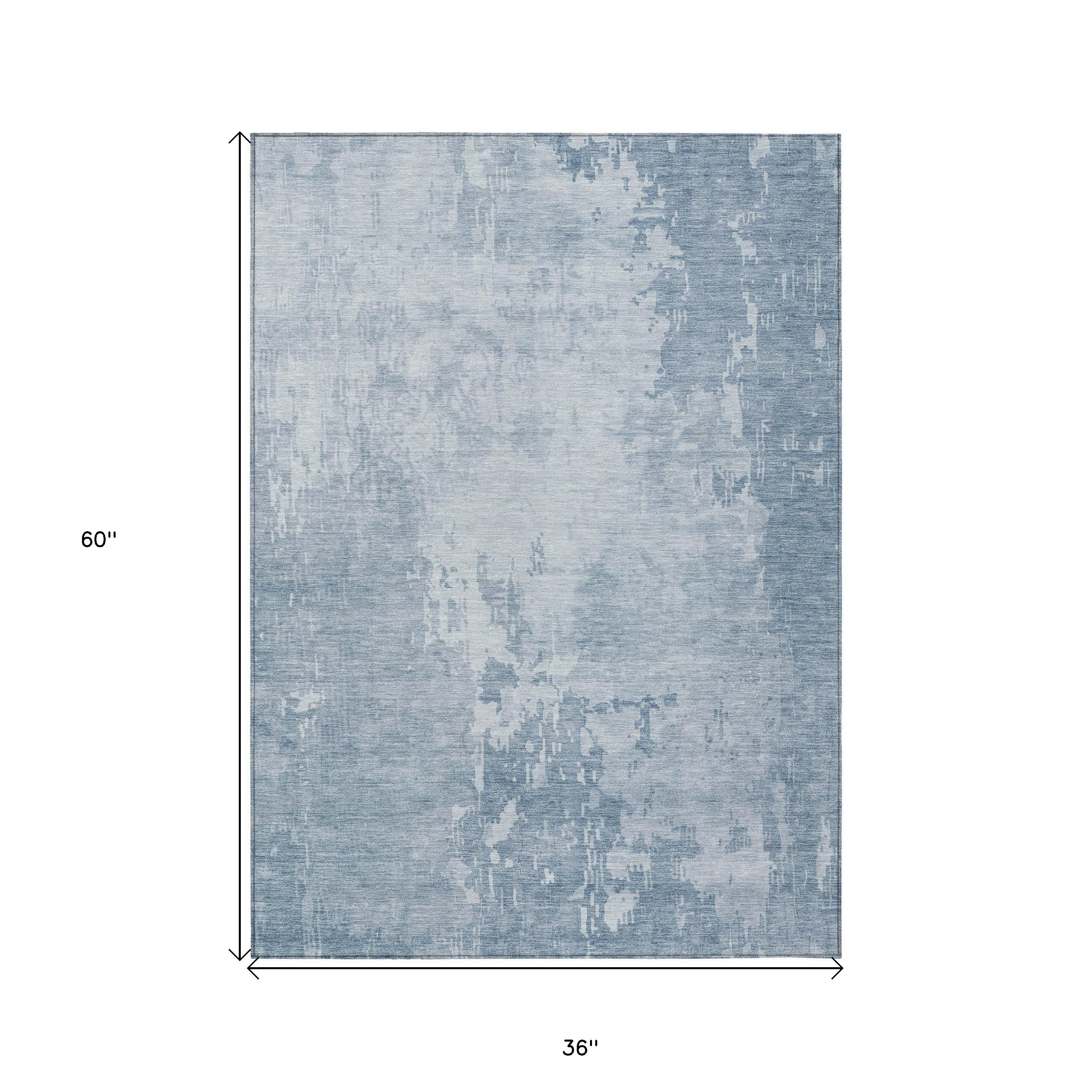 3' X 5' Sky Blue Abstract Washable Indoor Outdoor Area Rug