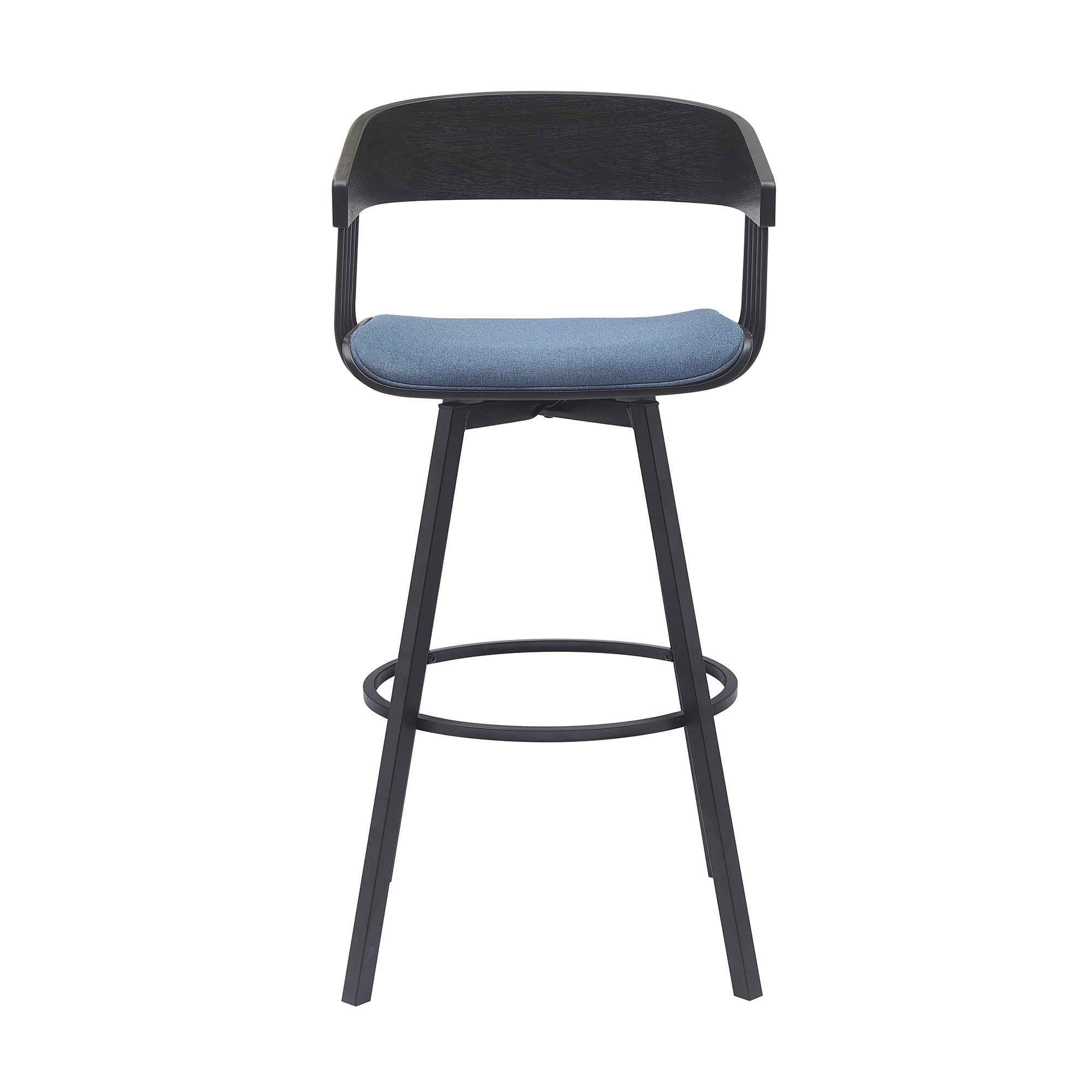 31" Blue and Black Fabric with Metal Swivel Bar Height Bar Chair