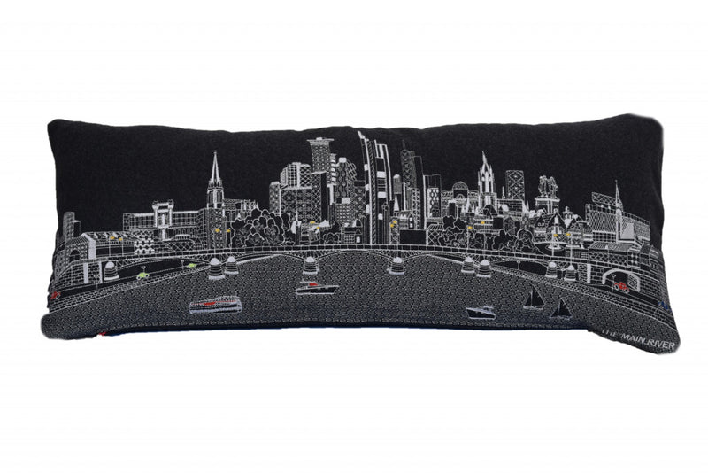 Showcase this world famous city, with our Black Color Frankfurt Nighttime Skyline Queen Size Lumbar Decorative Pillow. The Nighttime view of Frankfurt, is picture perfect. The gorgeous art features many famous landmarks and references for this destination city, rendering a modern whimsical way to bring this iconic citys to life. Made of a wool/nylon blend, this high quality stitched decorative pillow features white on black embroidered artwork mixed with pops of color that highlight important and recognizable icons from this internationally important and popular German city. This pillow makes a great gift, decorative accent and conversation piece. 4" x 35" x 14"