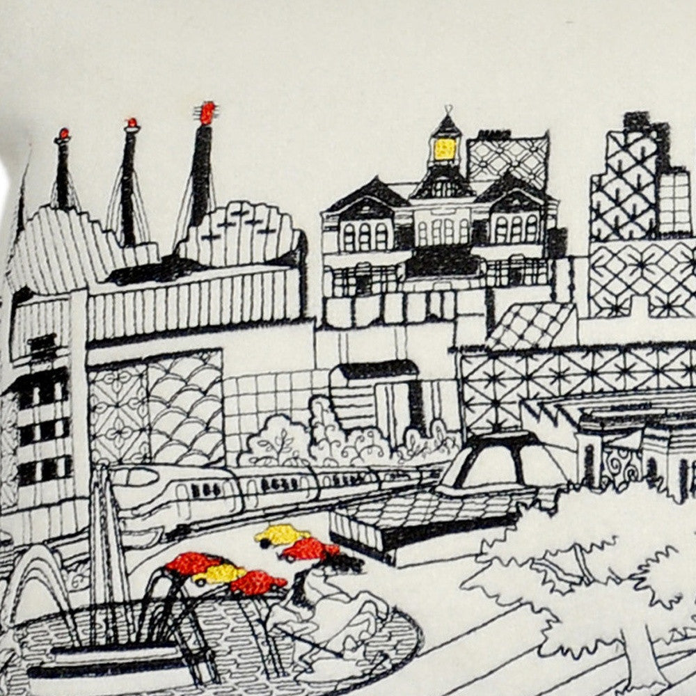 Showcase this famous city, with our Cream Color Kansas City Daylight Skyline Queen Size Lumbar Decorative Pillow. The daylight view of Kansas City, is picture perfect. The gorgeous art features many famous landmarks and references for this destination city, rendering a modern whimsical way to bring this iconic city to life. Made of a wool/nylon blend, this high quality stitched decorative pillow features black on white embroidered artwork mixed with pops of color that highlight important and recognizable icons from this popular city. This pillow makes a great gift, decorative accent and conversation piece. 4" x 35" x 14"