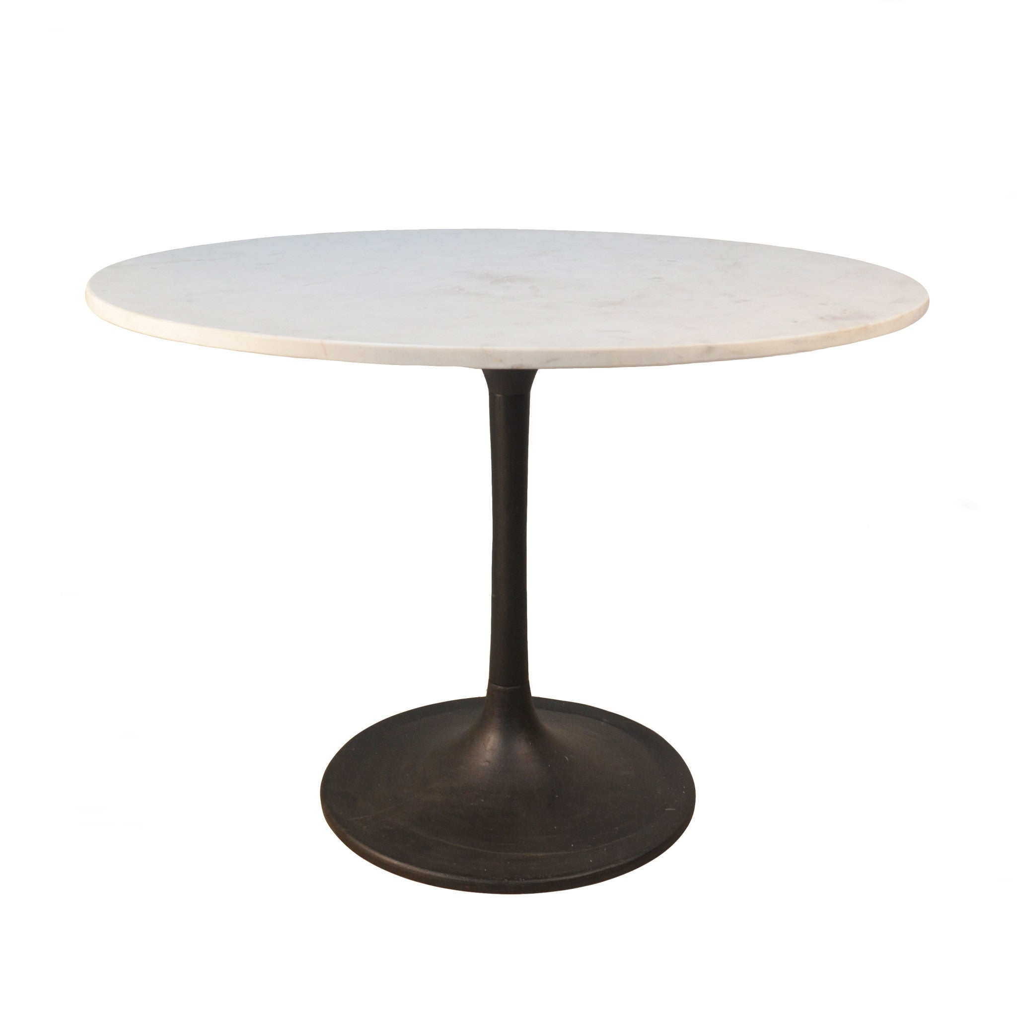 40" White And Black Rounded Marble And Iron Pedestal Base Dining Table