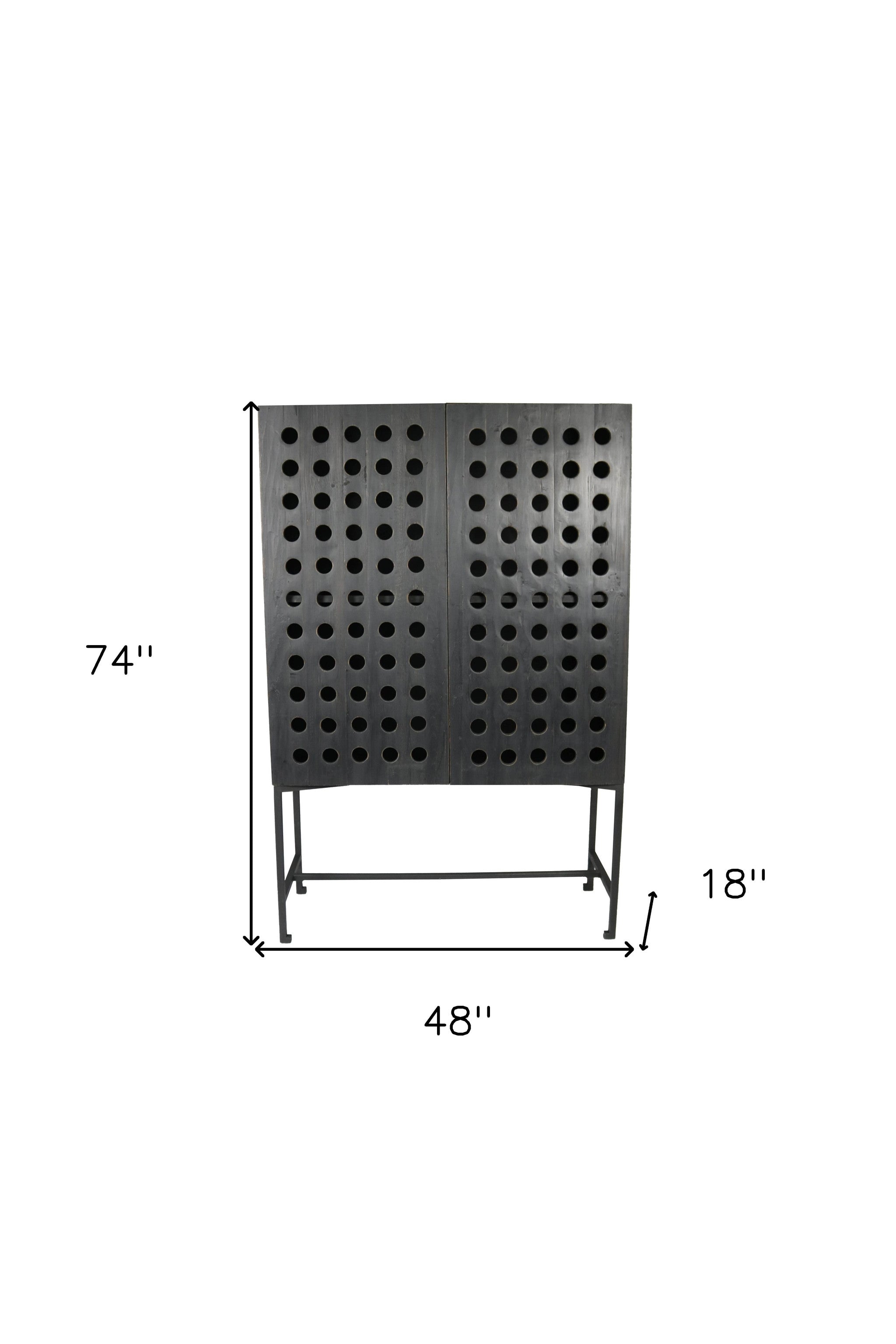 48" Dark Gray Solid Wood and Metal Holey Two Door Accent Chest