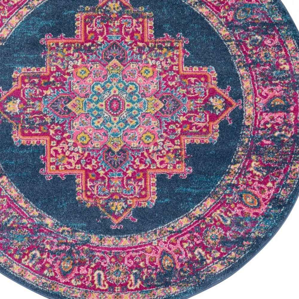 Add great coloration and comfortable texture to your space with this 5' blue round power loom area rug. This superior Turkish rug represents the highest quality and is built to last. Area Rugs help to give warmth and sense of home to your space. 1" H x 63" W x 63" D