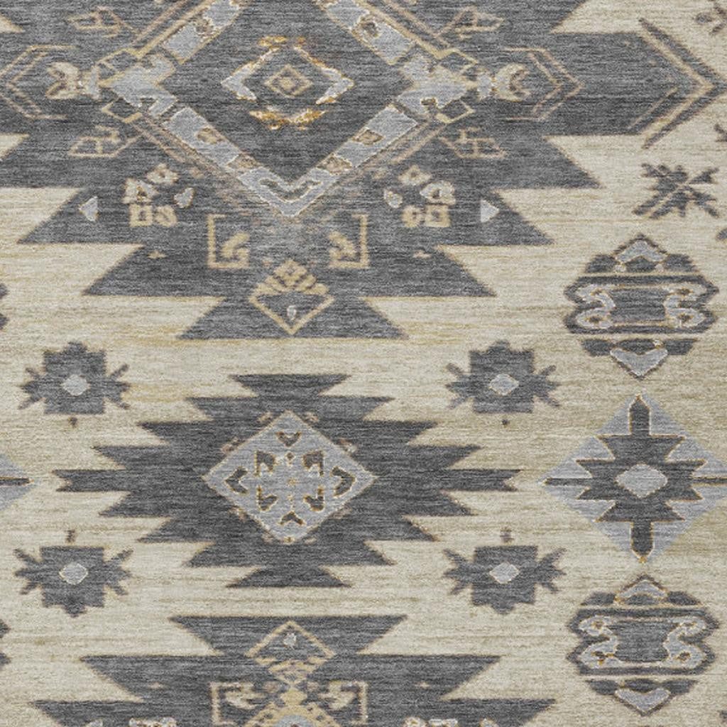 5' X 8' Beige And Gray Tribal Washable Indoor Outdoor Area Rug