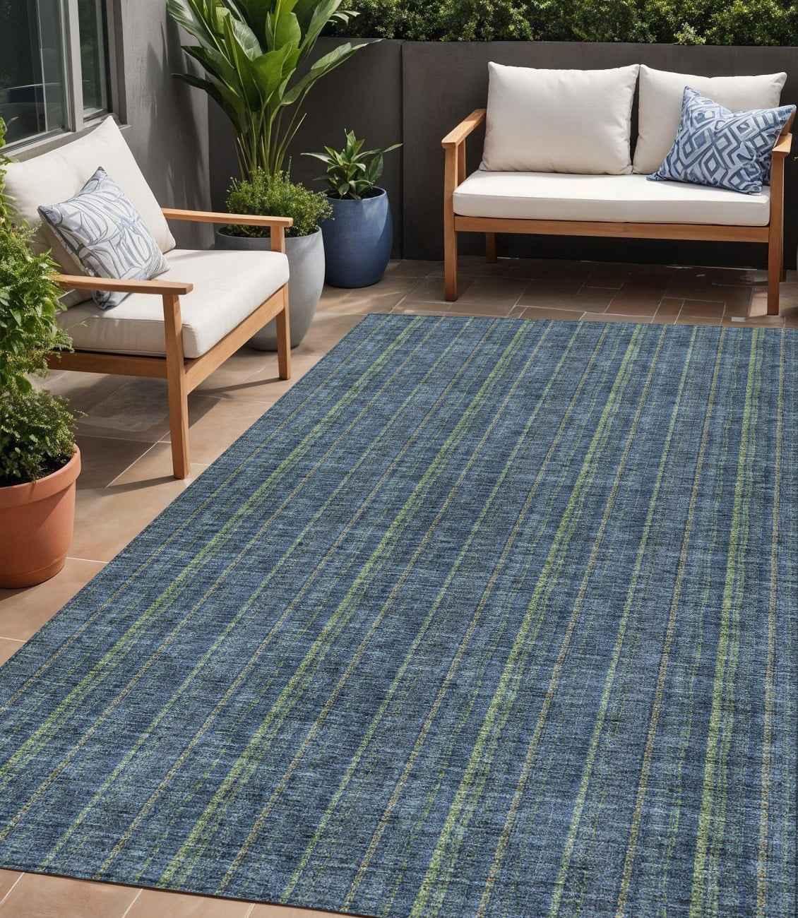 5' X 8' Blue Denim Blue And Mint Green Striped Washable Indoor Outdoor Area Rug