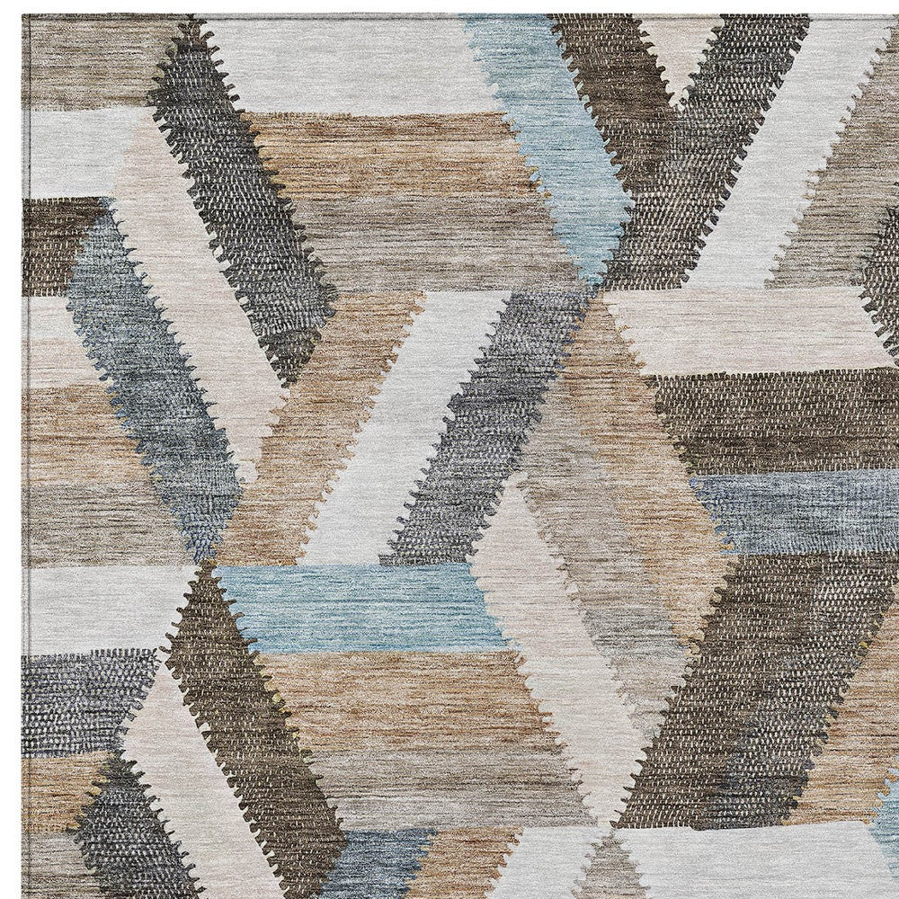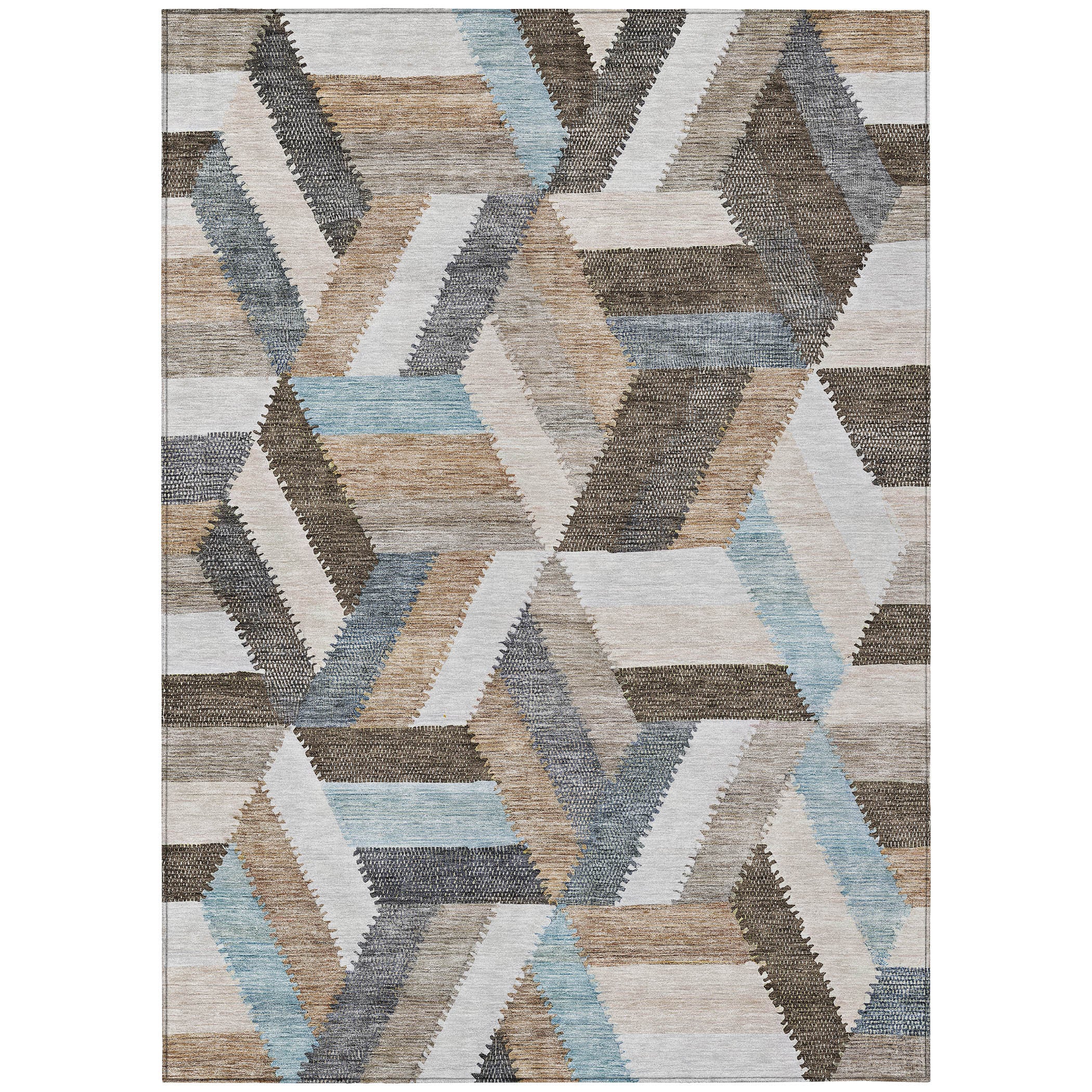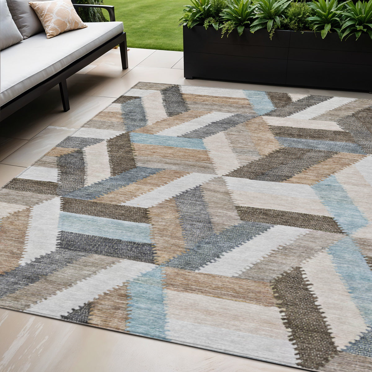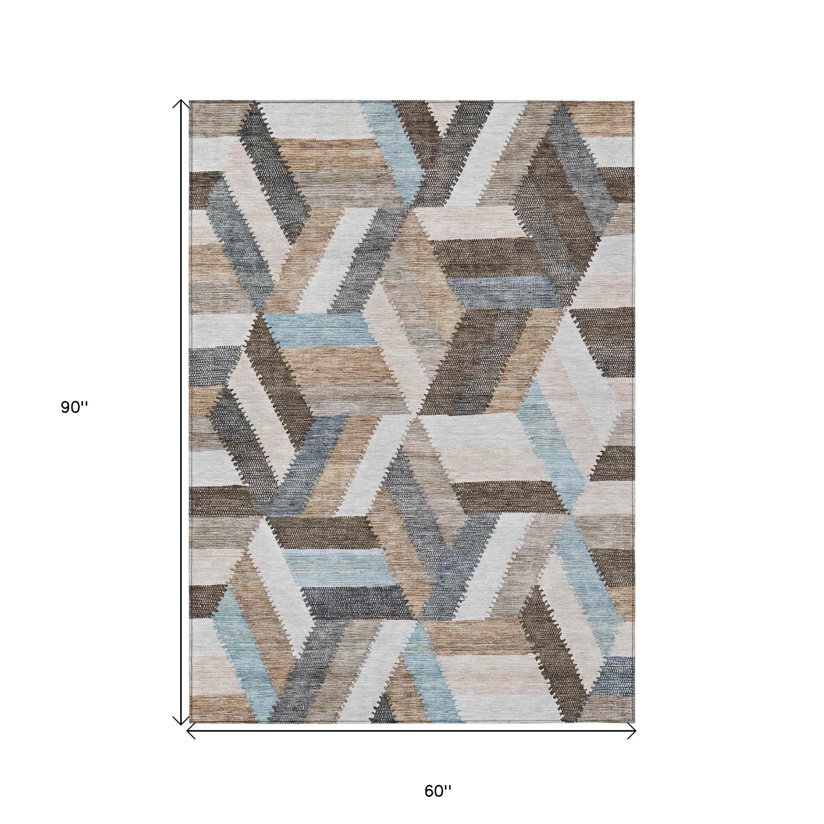 5' X 8' Brown Geometric Washable Indoor Outdoor Area Rug