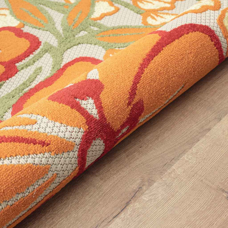 This 5-foot x 8-foot orange and ivory handmade indoor outdoor area rug is a great way to add warmth to a room. Versatile in use, durable, and easy to maintain, this rug is an ideal solution to add a decorative and inviting touch to your indoor or outdoor space. Crafted using a power loom technique, this rectangle rug is made from high-quality polypropylene, ensuring longevity and style. The vibrant color combination enhances any setting effortlessly. 60-inch h x 96-inch w x 0.35-inch d.