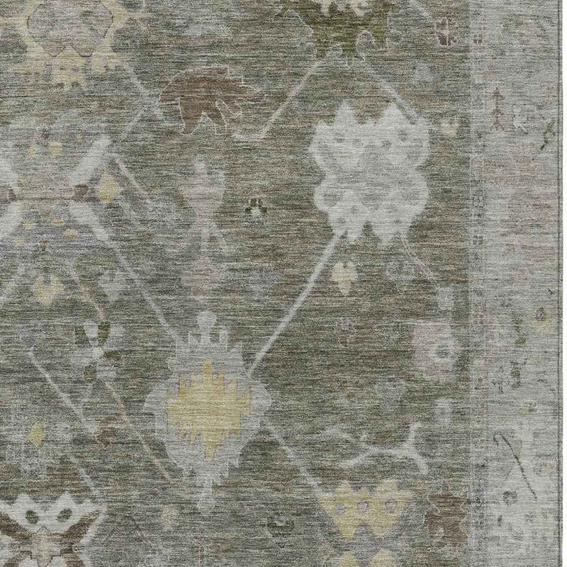 5' X 8' Pewter And Gold Tribal Washable Indoor Outdoor Area Rug