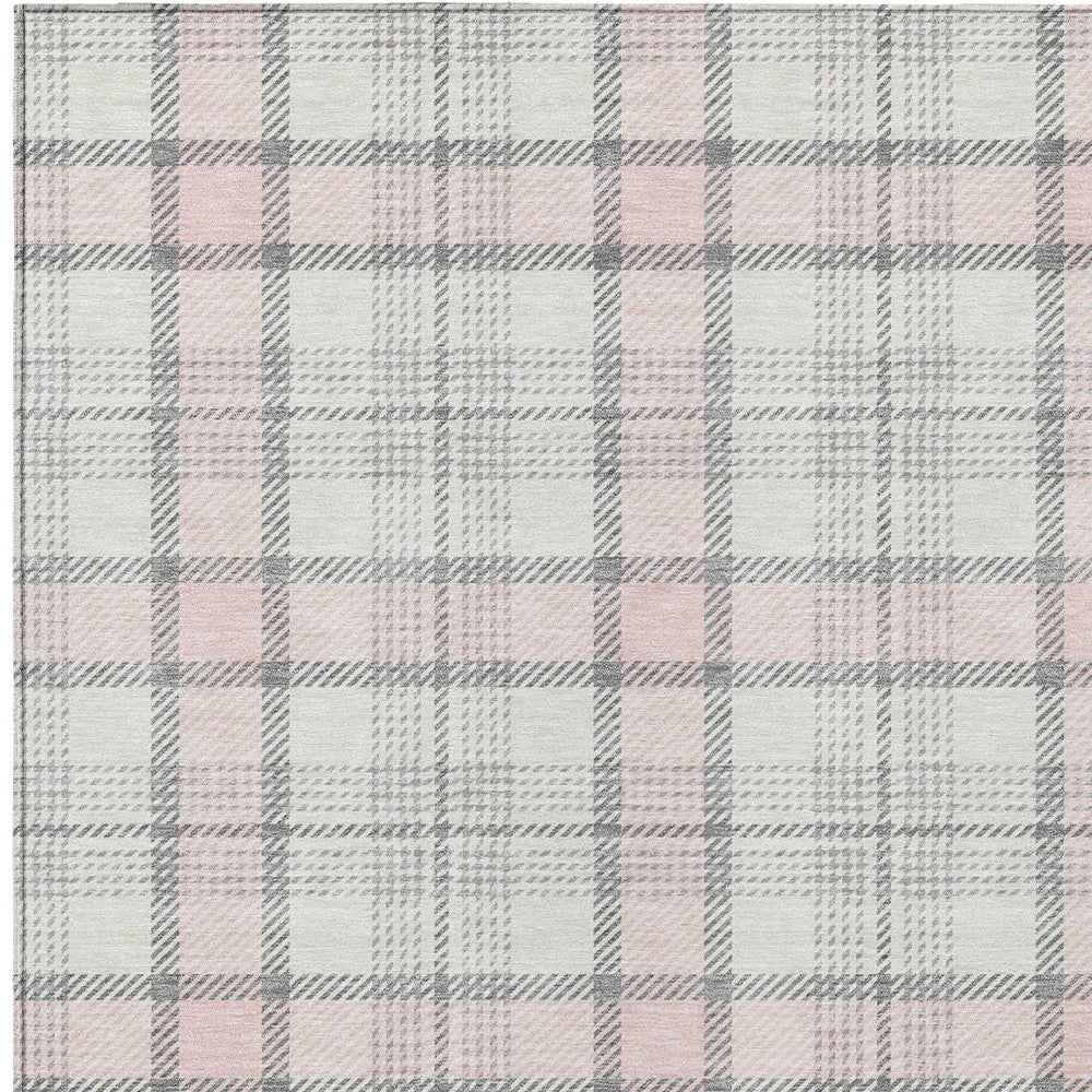 5' X 8' Pink And Gray Plaid Washable Indoor Outdoor Area Rug - 跳到内容