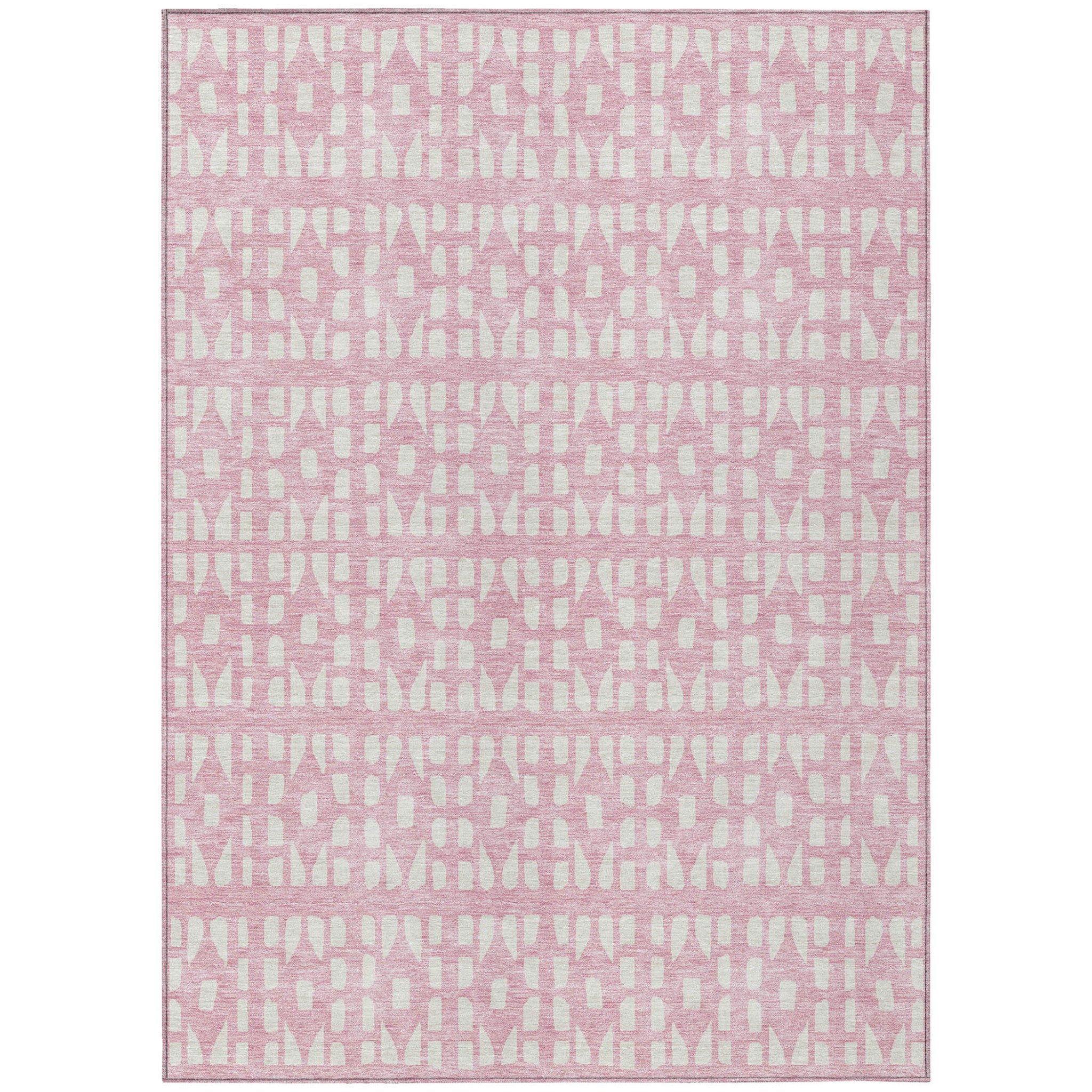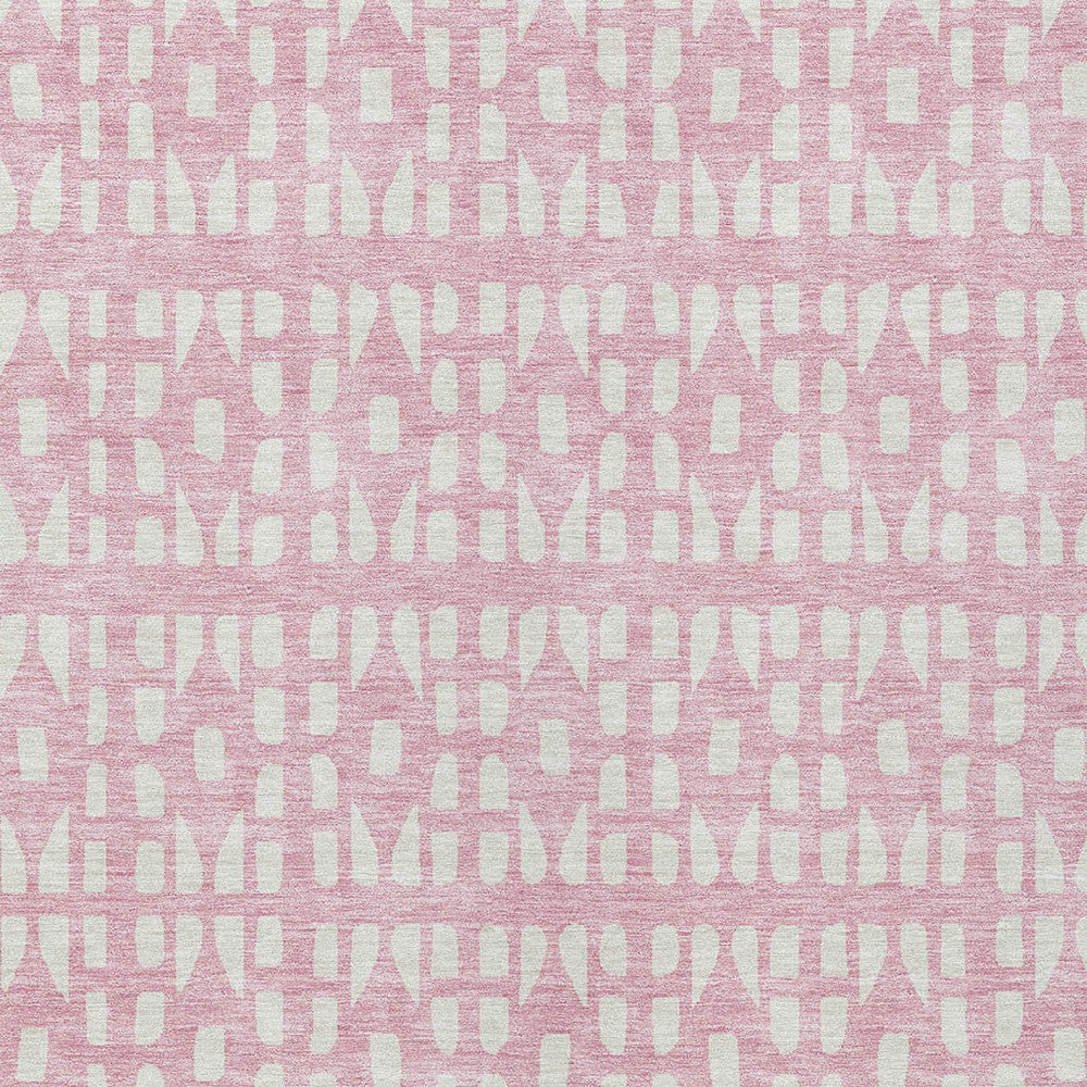 5' X 8' Pink And Ivory Geometric Washable Indoor Outdoor Area Rug