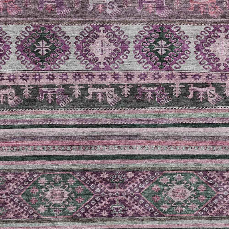 5' X 8' Purple Plum And Gray Tribal Washable Indoor Outdoor Area Rug - 跳到内容