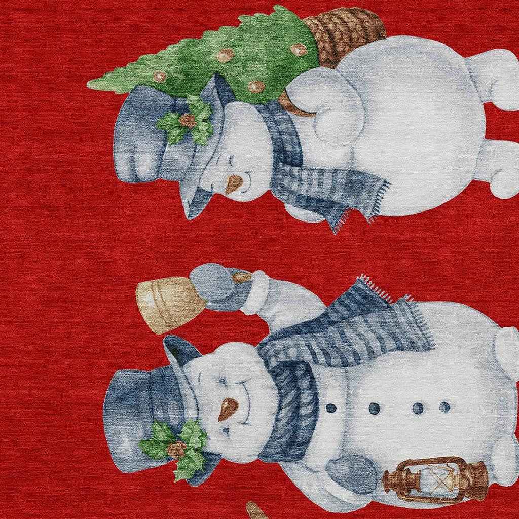 5' X 8' Red Denim Blue And Ivory Botanical Leaves Washable Indoor Outdoor Area Rug