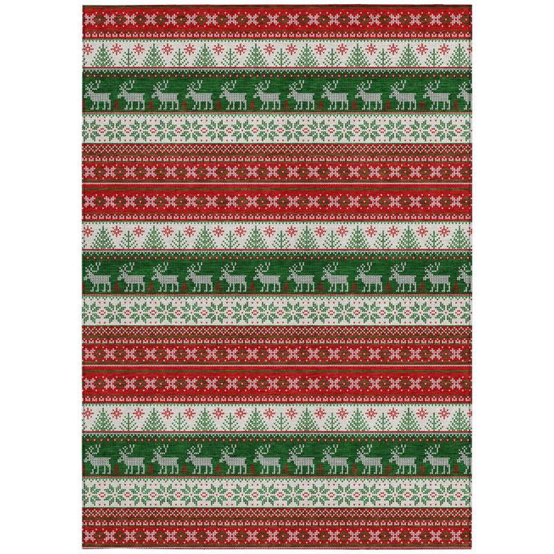 5' X 8' Red Green And Ivory Animal Print Washable Indoor Outdoor Area Rug
