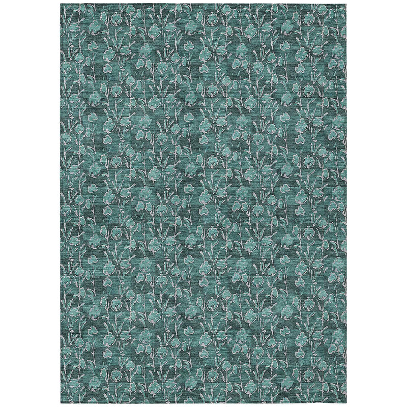 5' X 8' Teal Blue Aqua And Ivory Floral Washable Indoor Outdoor Area Rug
