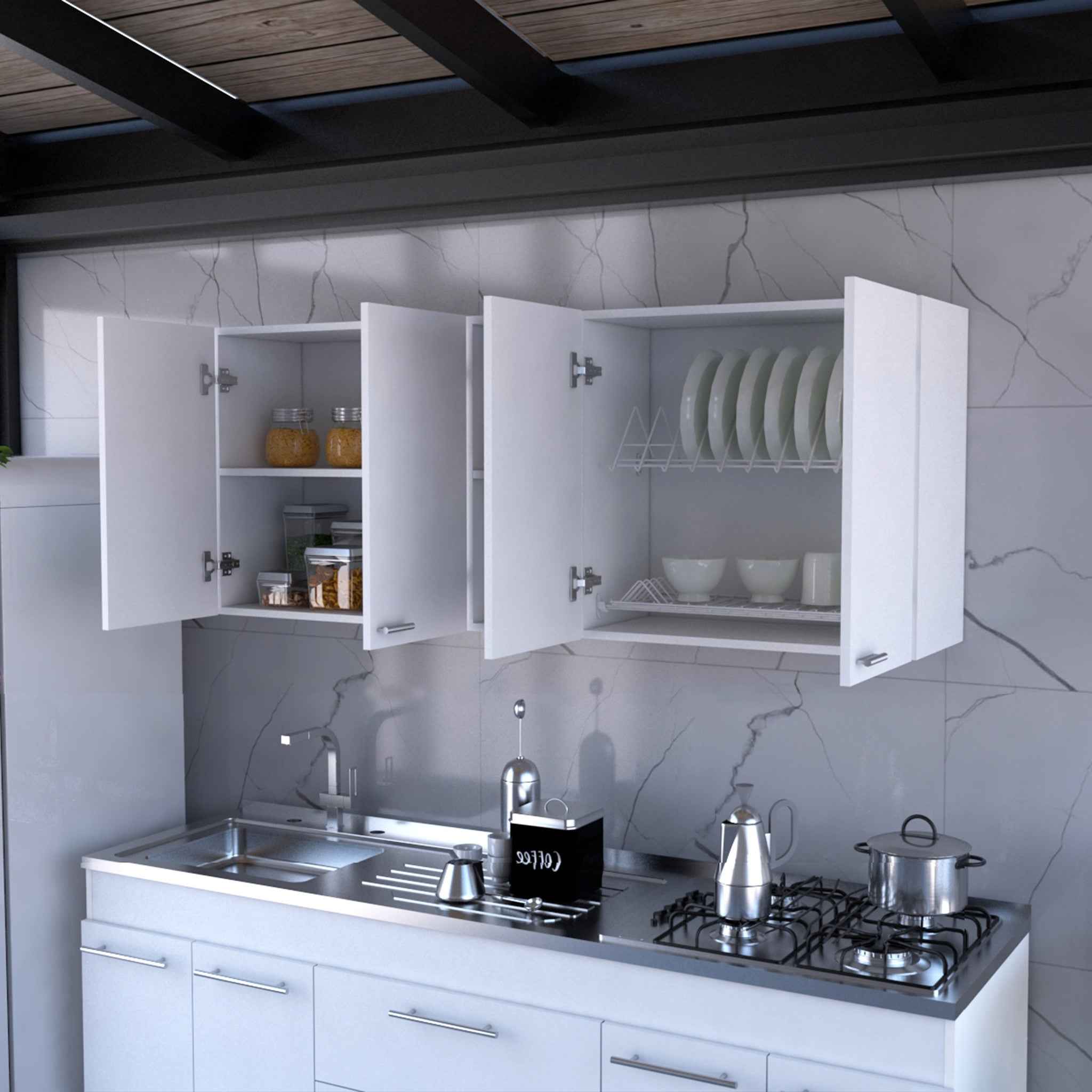 59" White Wood Wall Mounted Accent Cabinet With Four Doors - 跳到内容