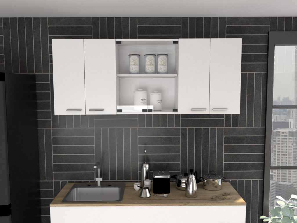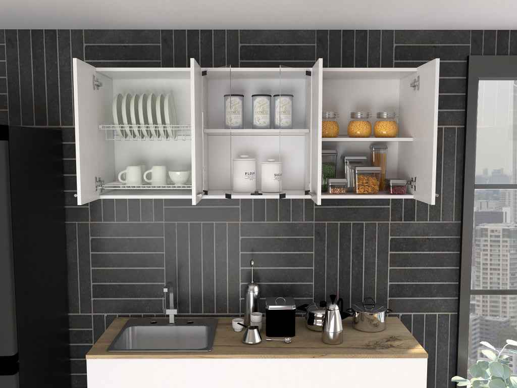 This 59-inch white wood wall mounted china cabinet with six doors will be the perfect addition to your kitchen or dining space. Featuring four solid white doors and two glass doors, this hanging cabinet gives you both concealed and visible storage space. The ideal modern cupboard for kitchen, this versatile cabinet includes inner shelves, a plate holder, and dish rack to help keep things neat and tidy. 23.6-inch h x 59-inch w x 12.4-inch d.