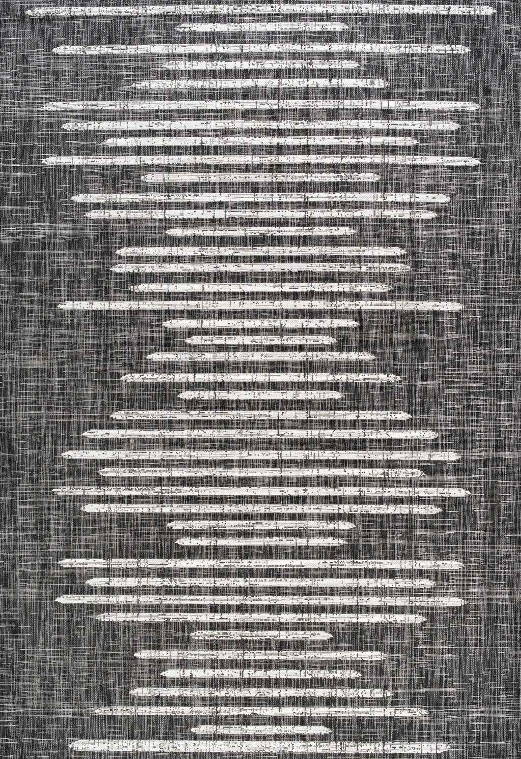 Add some artistry to your room with this 6-foot x 9-foot black and ivory striped indoor outdoor area rug. This rectangle shaped rug features a striped design that will work well both indoors or out. A classic shape marries with good looking design for your living room, hall, bedroom, porch, patio, or poolside. Makes a great way to dress up your patio, porch, or poolside, but also works well as a durable and easy to maintain option in the kitchen, family room, or mudroom. 72.00-inch h x 108.00-inch w x 0.19-inch d.