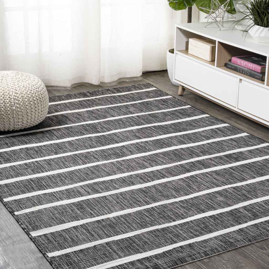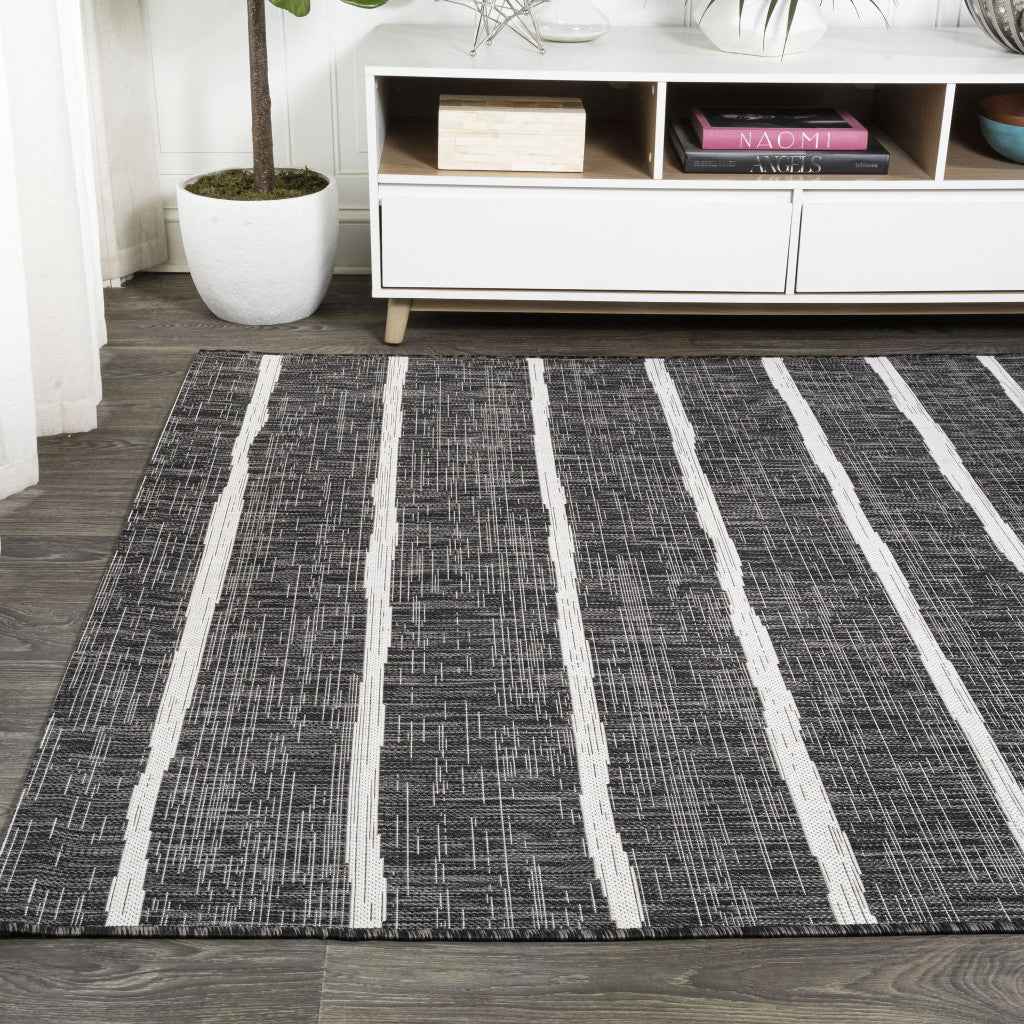 6' X 9' Black And Ivory Striped Indoor Outdoor Area Rug