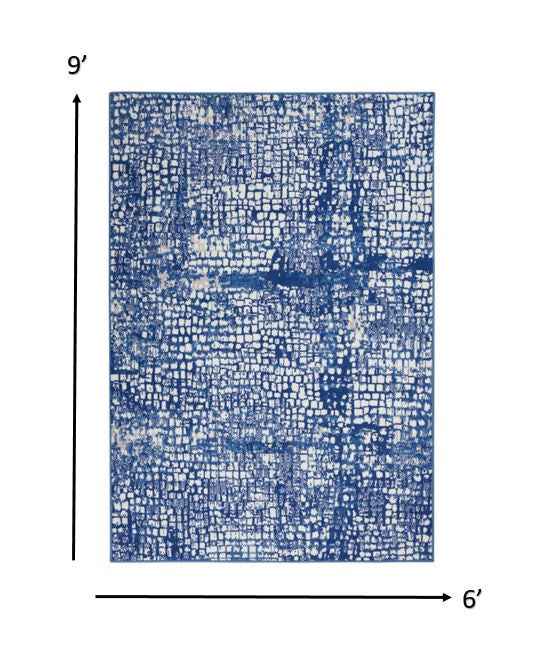 6' X 9' Blue And Ivory Abstract Dhurrie Area Rug